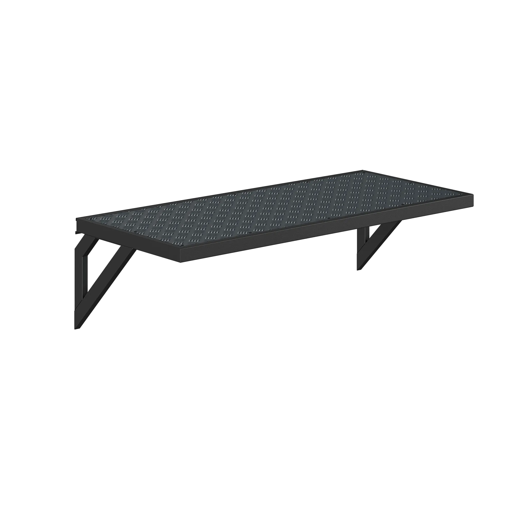 Полка усиленная изготовлена из стали и алюминиевого листа. Имеет стеновые упоры, позволяющие выдерживать весь более 100 кг. Предназначена для хранения бытовых вещей, спортивного, садового инвентаря, автомобильных принадлежностей. Устойчива к коррозии и механическим воздействиям.