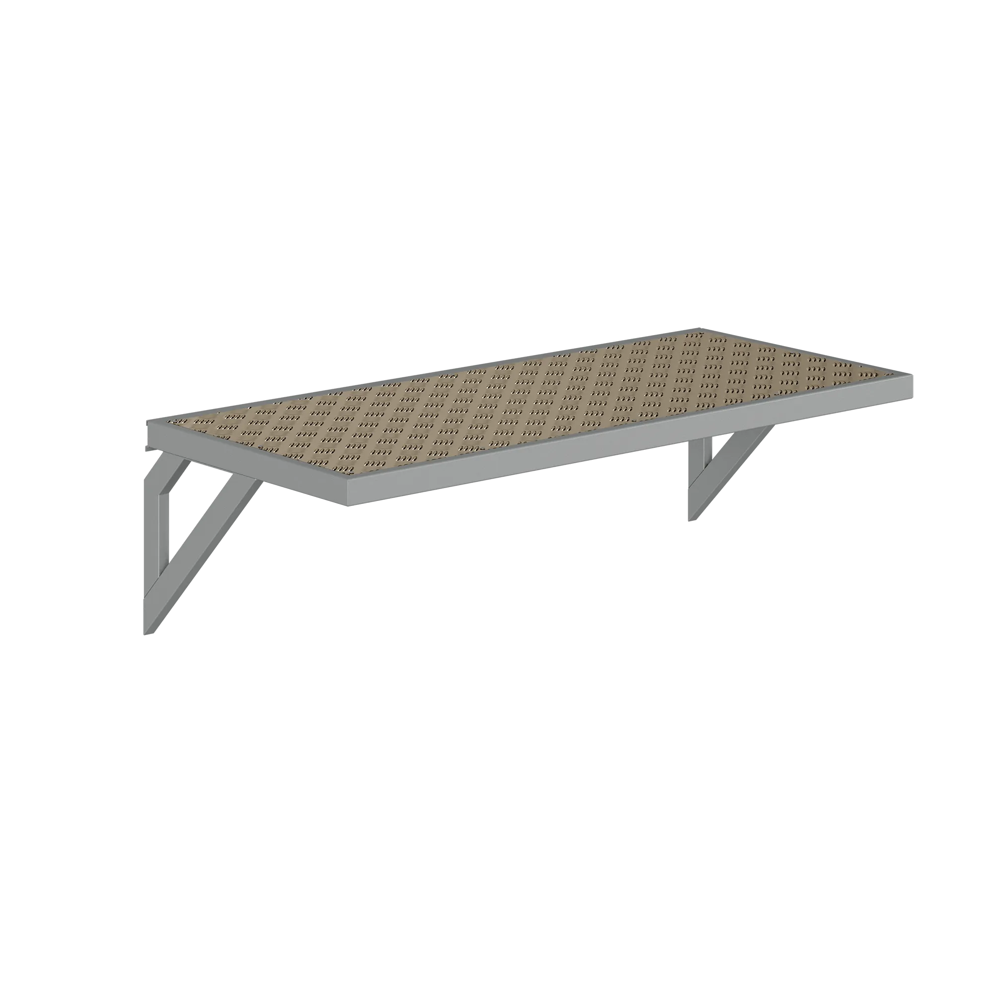 Полка усиленная изготовлена из стали и алюминиевого листа. Имеет стеновые упоры, позволяющие выдерживать весь более 100 кг. Предназначена для хранения бытовых вещей, спортивного, садового инвентаря, автомобильных принадлежностей. Устойчива к коррозии и механическим воздействиям.