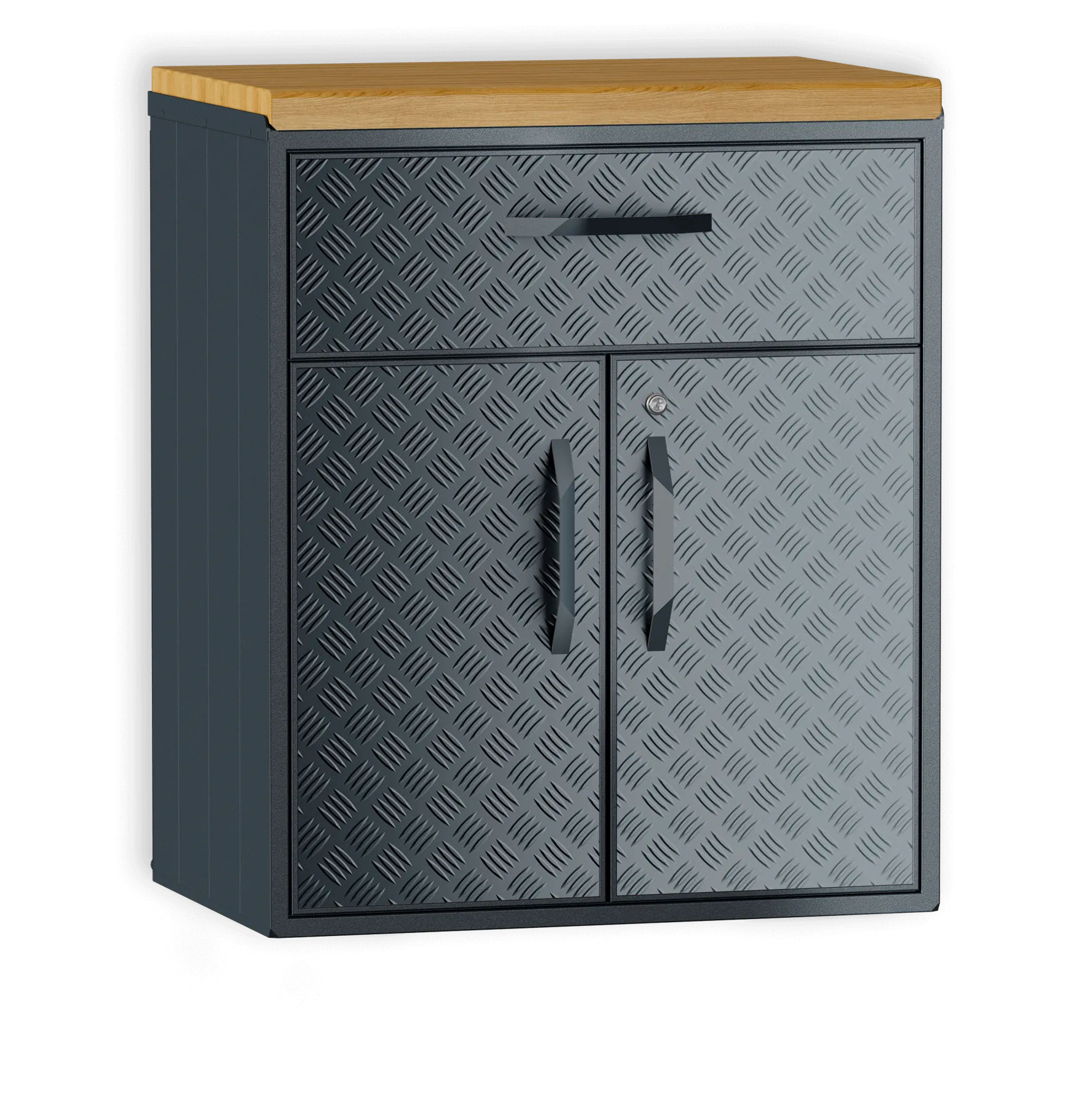 Шкаф из алюминия с ящиком. Специально разработан для любых погодных условий. Внутренняя полка регулируется по высоте. Ящик с доводчиками для плавного бесшумного закрытия.