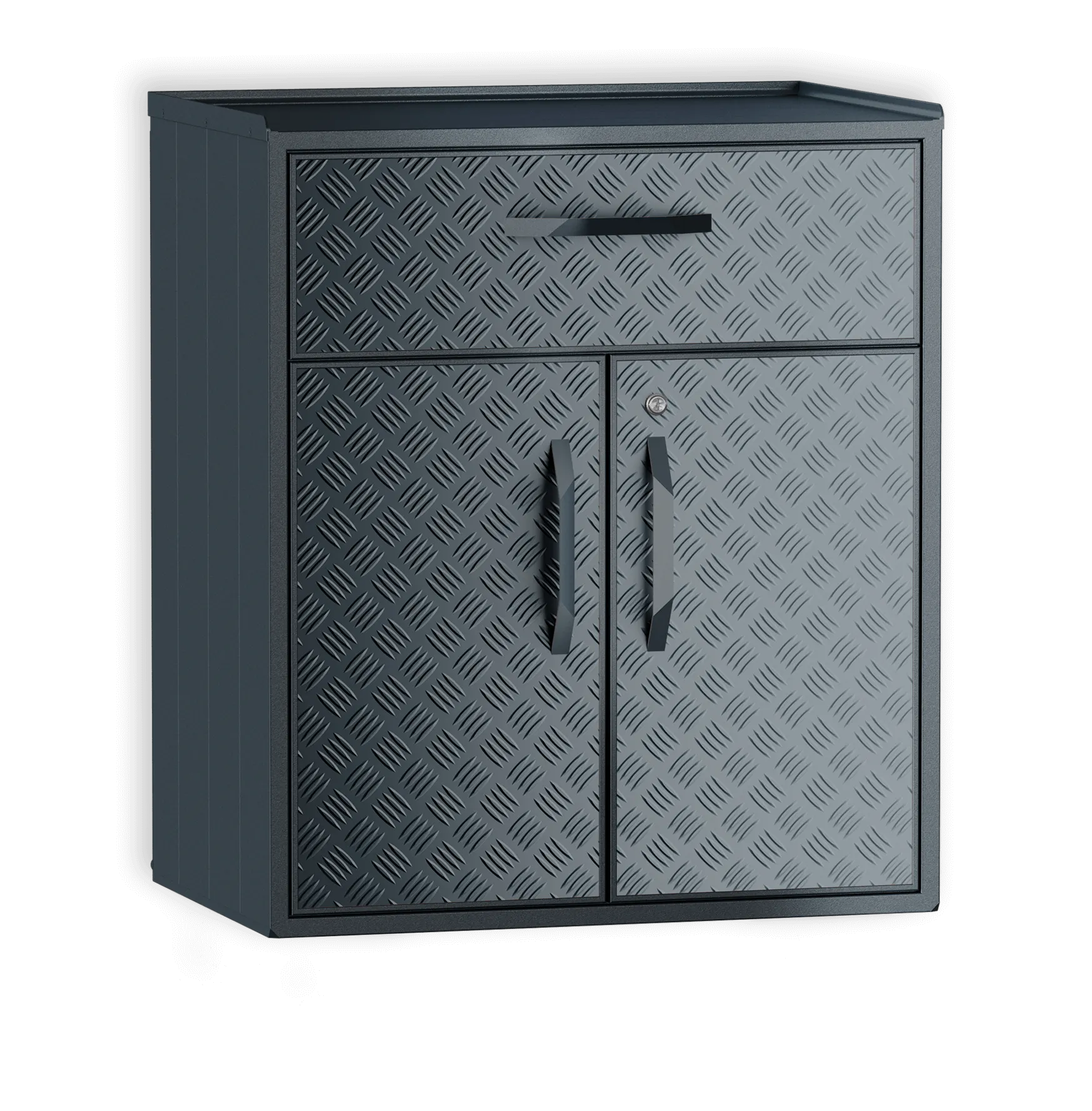 Шкаф из алюминия с ящиком. Специально разработан для любых погодных условий. Внутренняя полка регулируется по высоте. Ящик с доводчиками для плавного бесшумного закрытия.