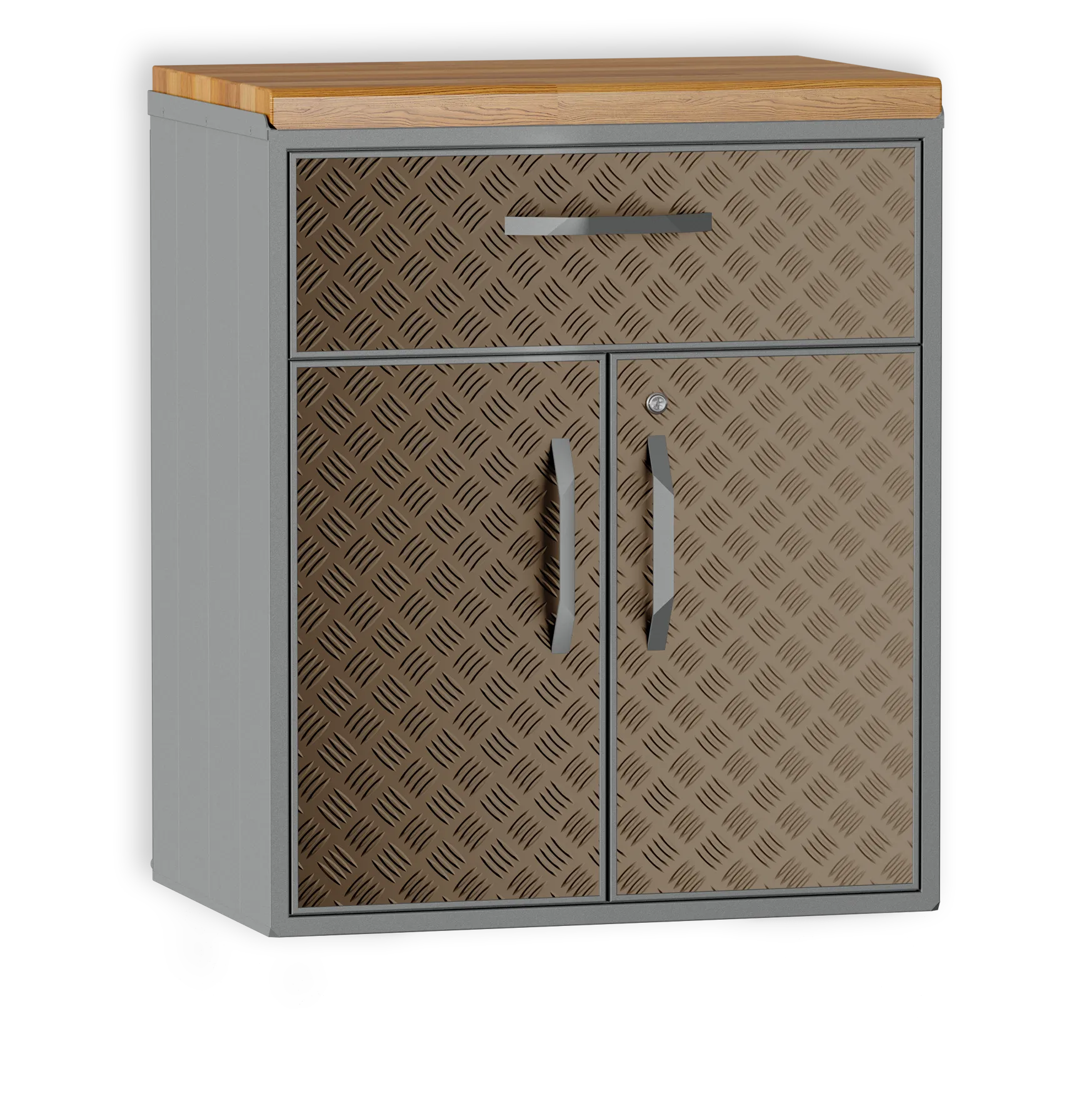 Шкаф из алюминия с ящиком. Специально разработан для любых погодных условий. Внутренняя полка регулируется по высоте. Ящик с доводчиками для плавного бесшумного закрытия.