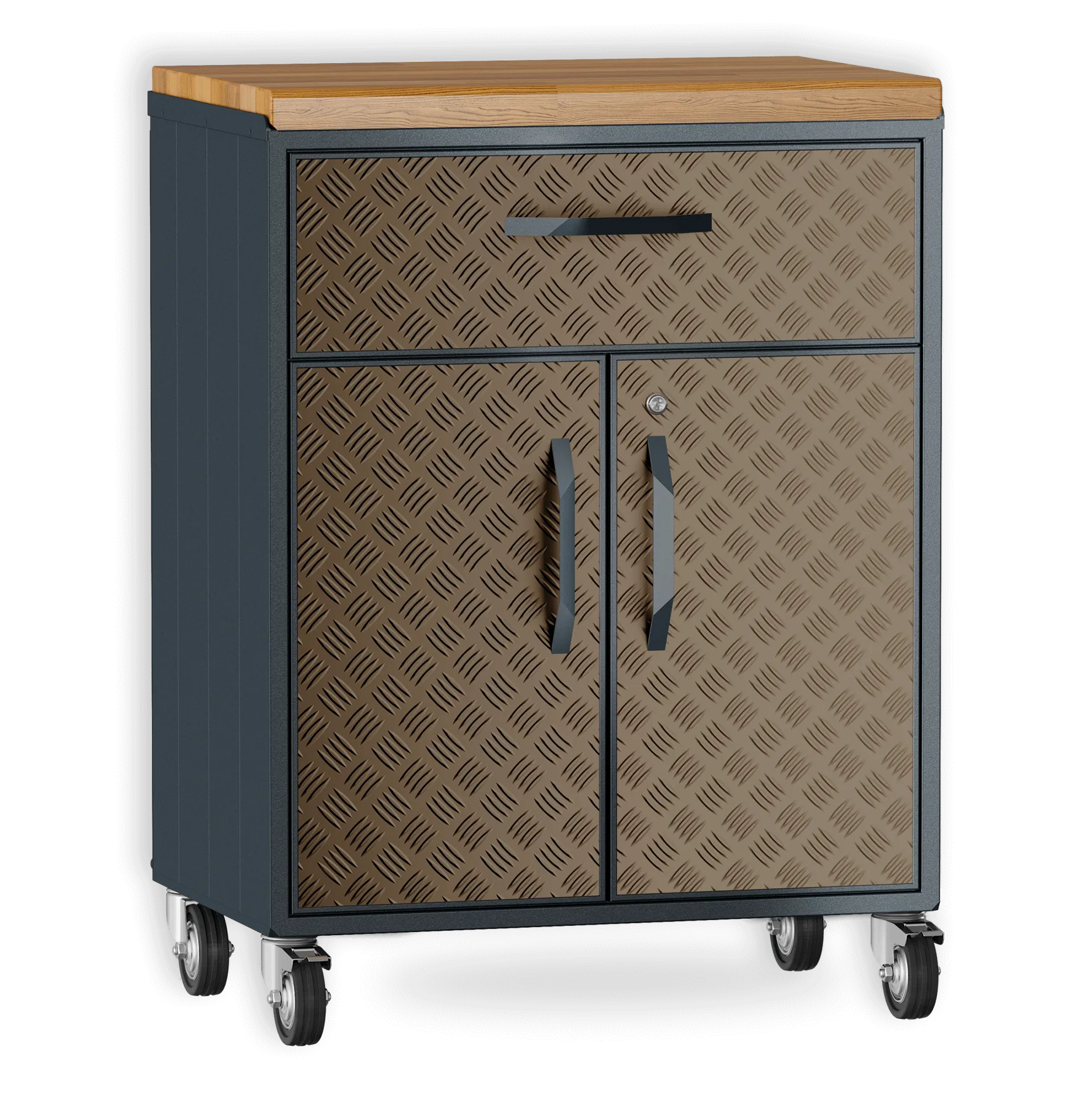 Шкаф из алюминия с ящиком. Специально разработан для любых погодных условий. Внутренняя полка регулируется по высоте. Ящик с доводчиками для плавного бесшумного закрытия.