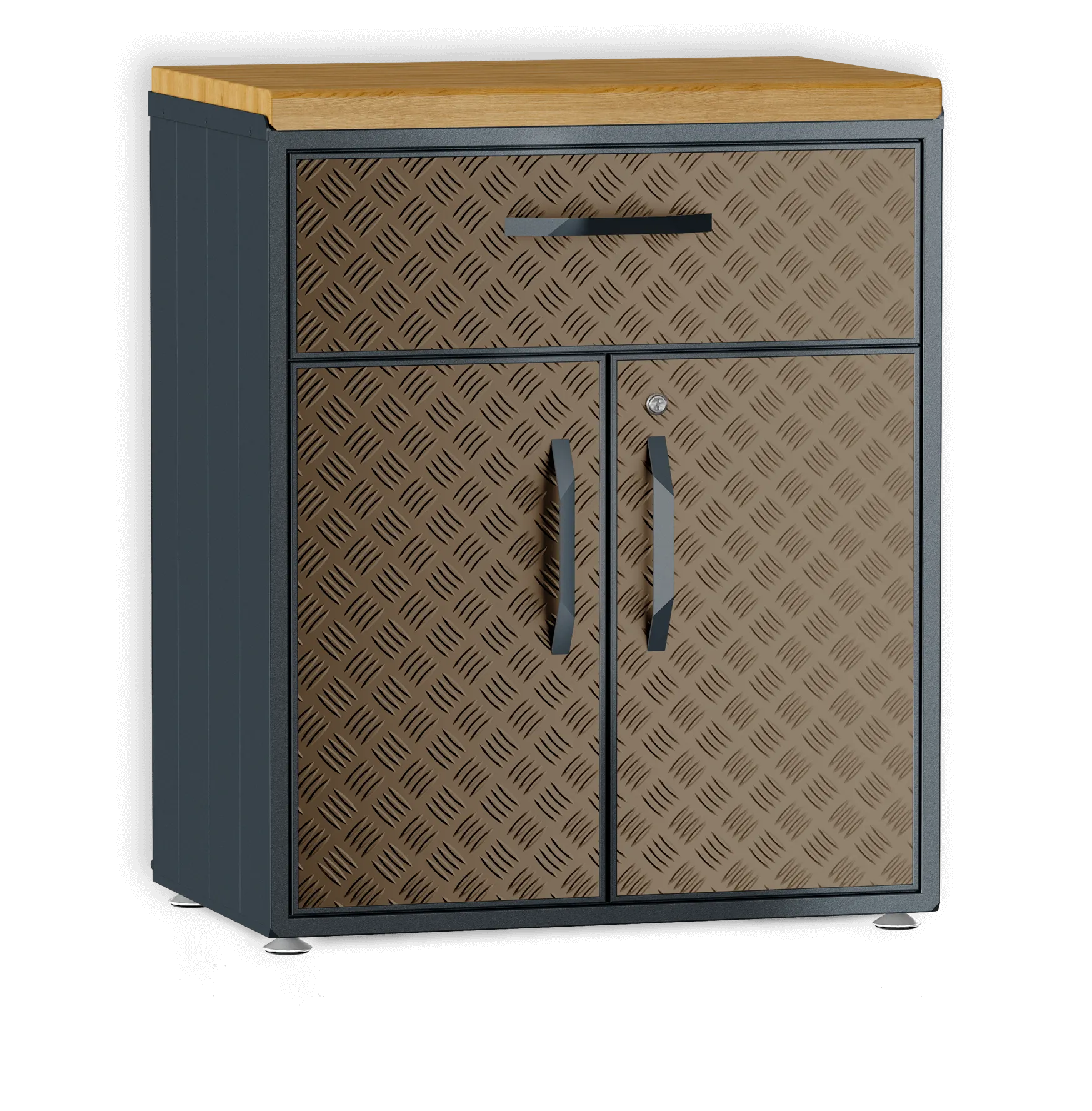 Шкаф из алюминия с ящиком. Специально разработан для любых погодных условий. Внутренняя полка регулируется по высоте. Ящик с доводчиками для плавного бесшумного закрытия.