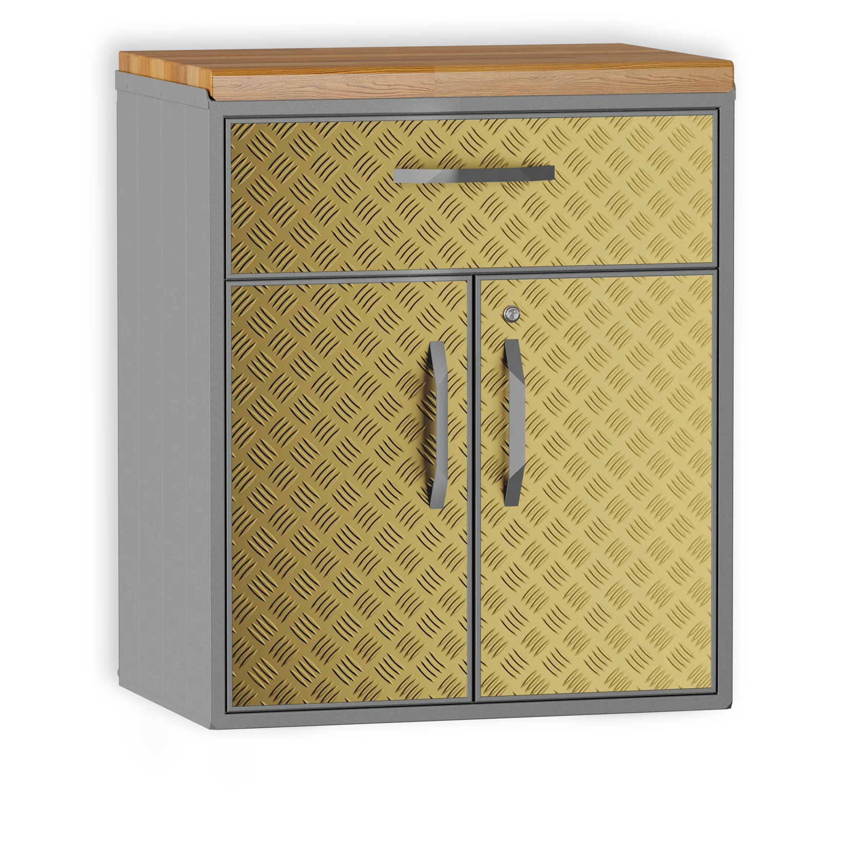 Шкаф из алюминия с ящиком. Специально разработан для любых погодных условий. Внутренняя полка регулируется по высоте. Ящик с доводчиками для плавного бесшумного закрытия.