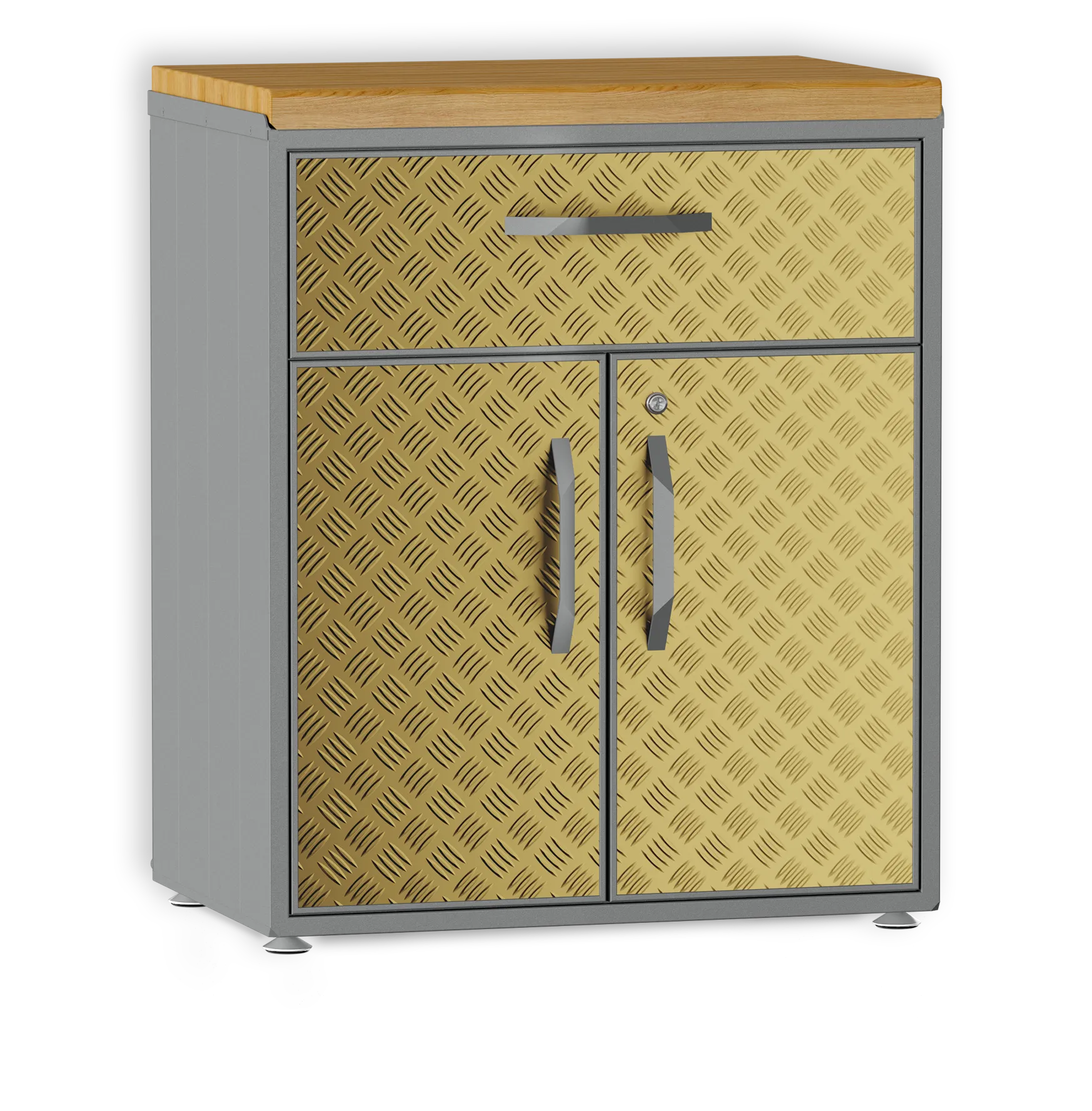 Шкаф из алюминия с ящиком. Специально разработан для любых погодных условий. Внутренняя полка регулируется по высоте. Ящик с доводчиками для плавного бесшумного закрытия.
