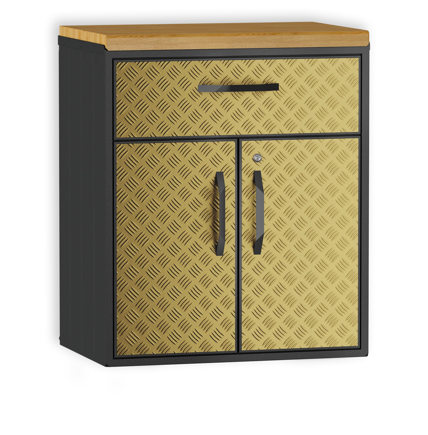 Шкаф из алюминия с ящиком. Специально разработан для любых погодных условий. Внутренняя полка регулируется по высоте. Ящик с доводчиками для плавного бесшумного закрытия.