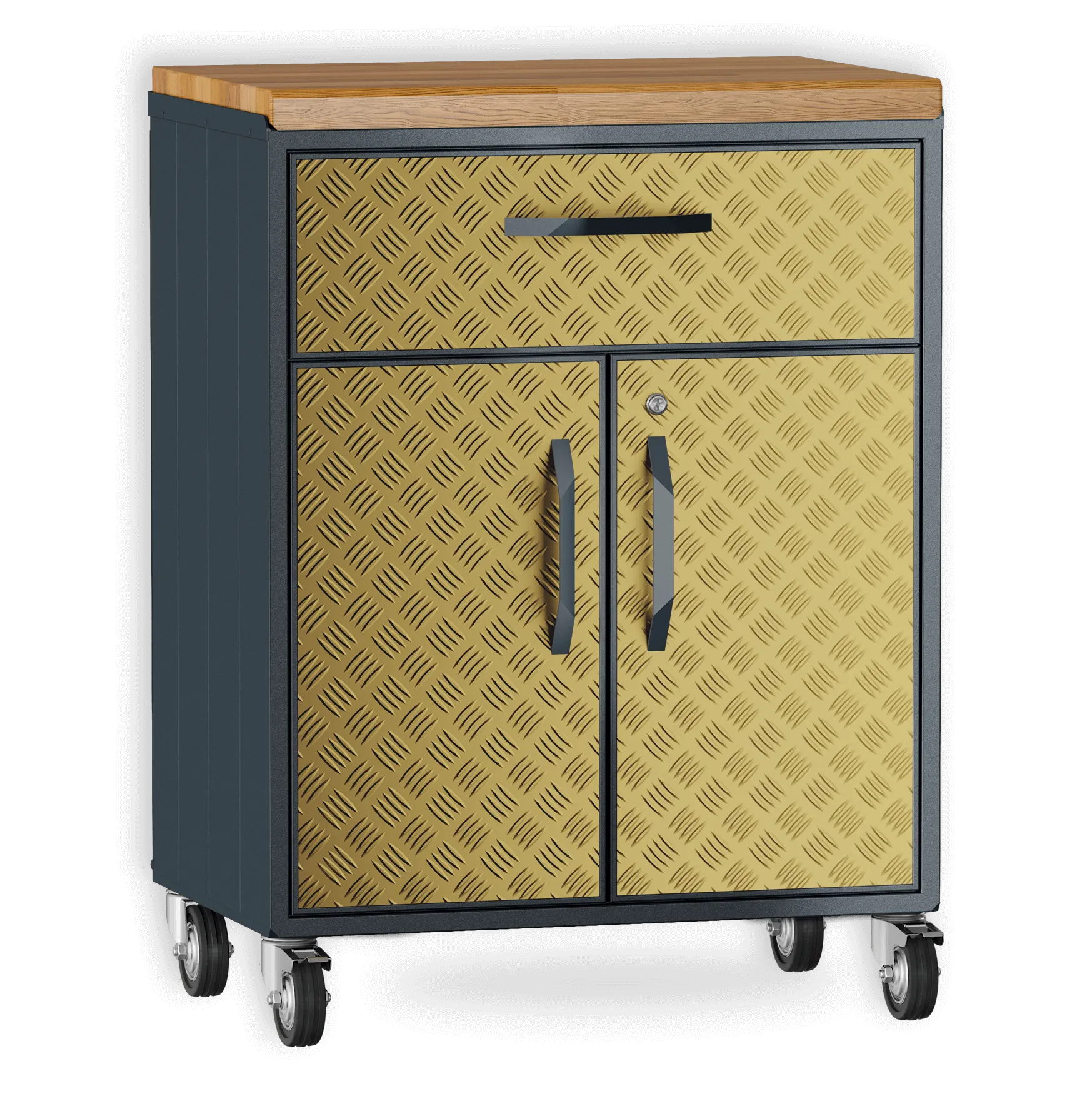 Шкаф из алюминия с ящиком. Специально разработан для любых погодных условий. Внутренняя полка регулируется по высоте. Ящик с доводчиками для плавного бесшумного закрытия.