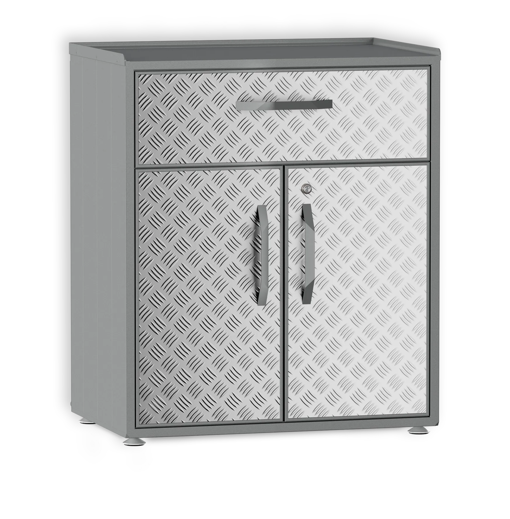 Шкаф из алюминия с ящиком. Специально разработан для любых погодных условий. Внутренняя полка регулируется по высоте. Ящик с доводчиками для плавного бесшумного закрытия.