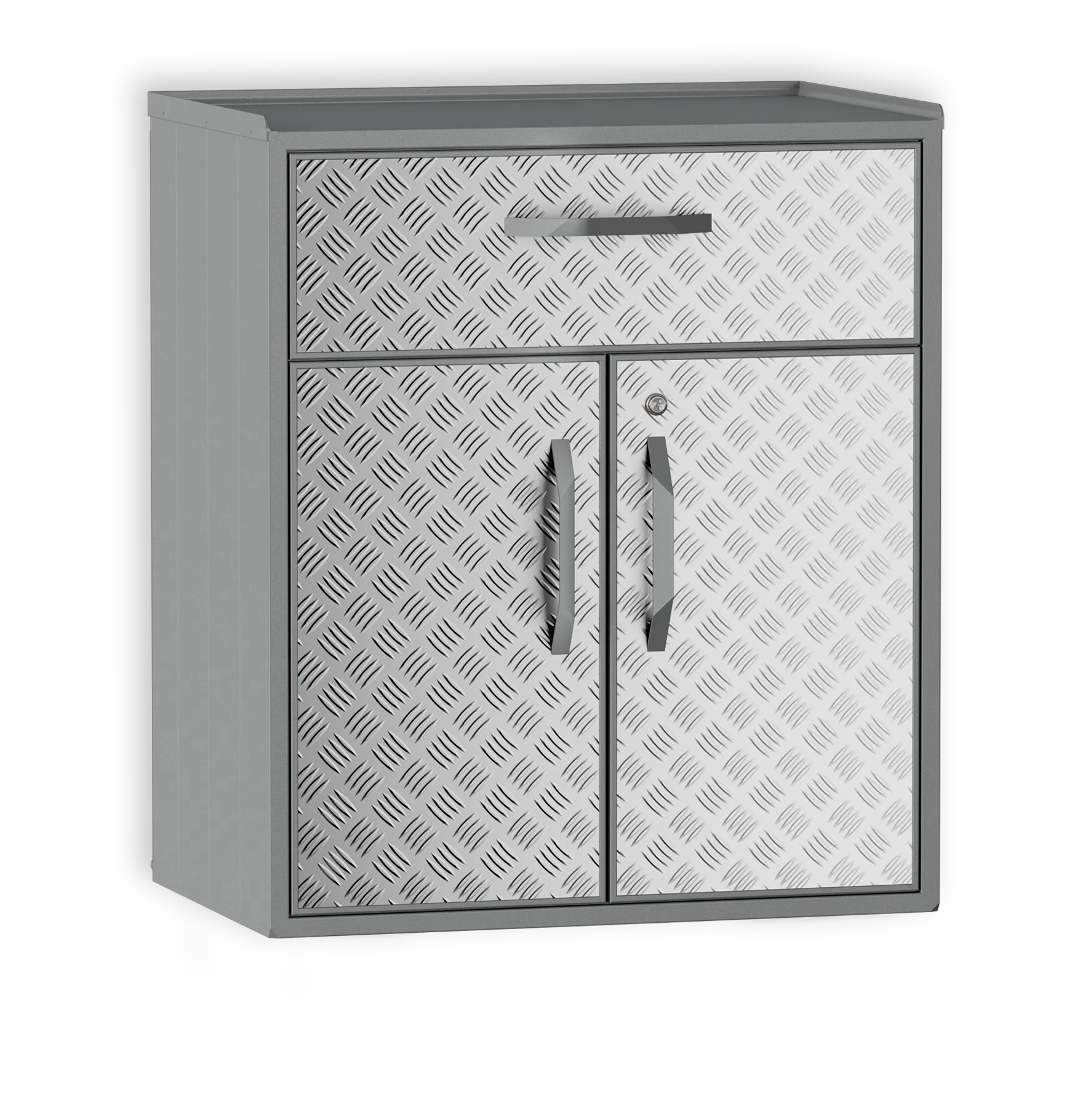 Шкаф из алюминия с ящиком. Специально разработан для любых погодных условий. Внутренняя полка регулируется по высоте. Ящик с доводчиками для плавного бесшумного закрытия.