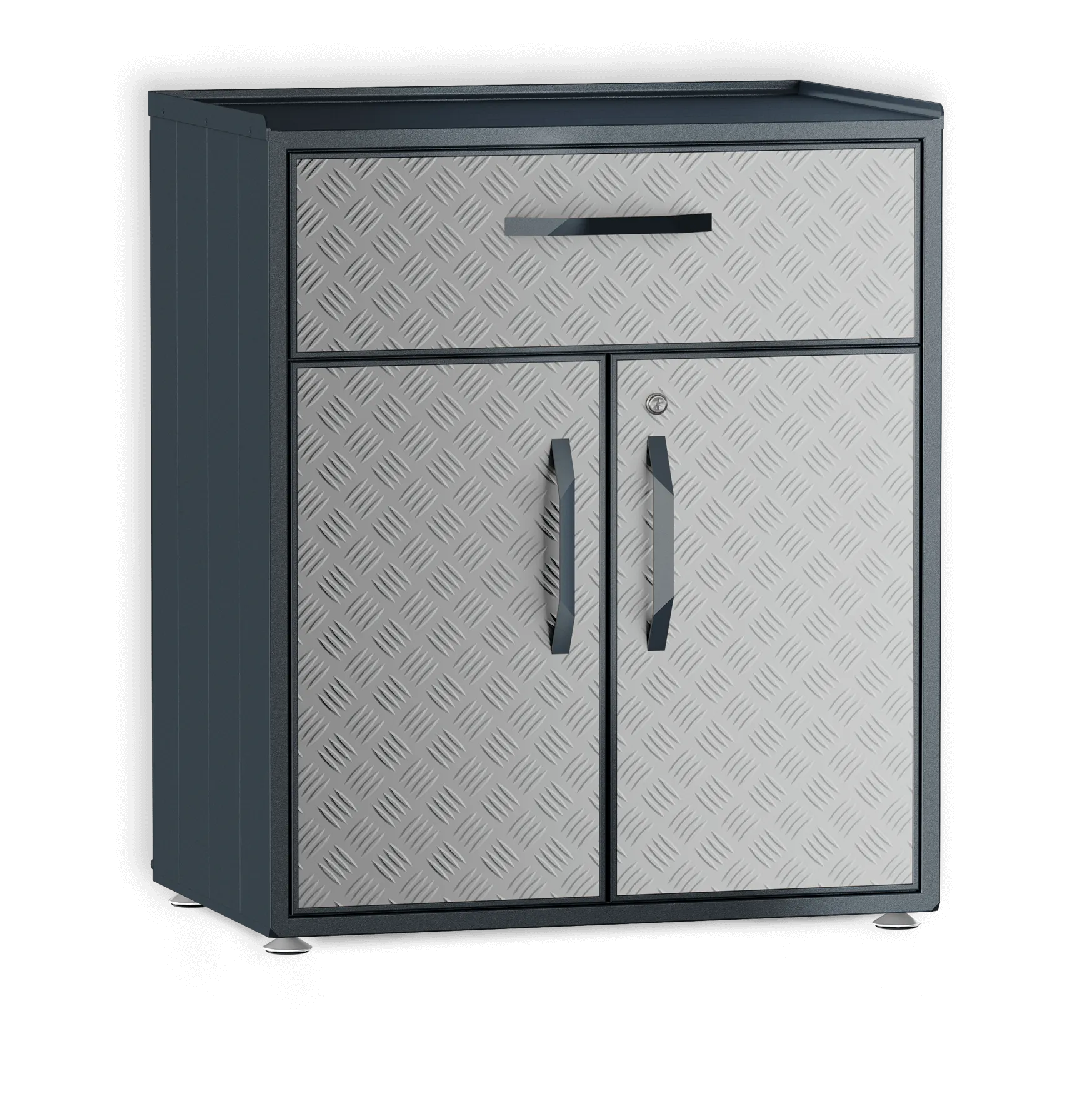 Шкаф из алюминия с ящиком. Специально разработан для любых погодных условий. Внутренняя полка регулируется по высоте. Ящик с доводчиками для плавного бесшумного закрытия.