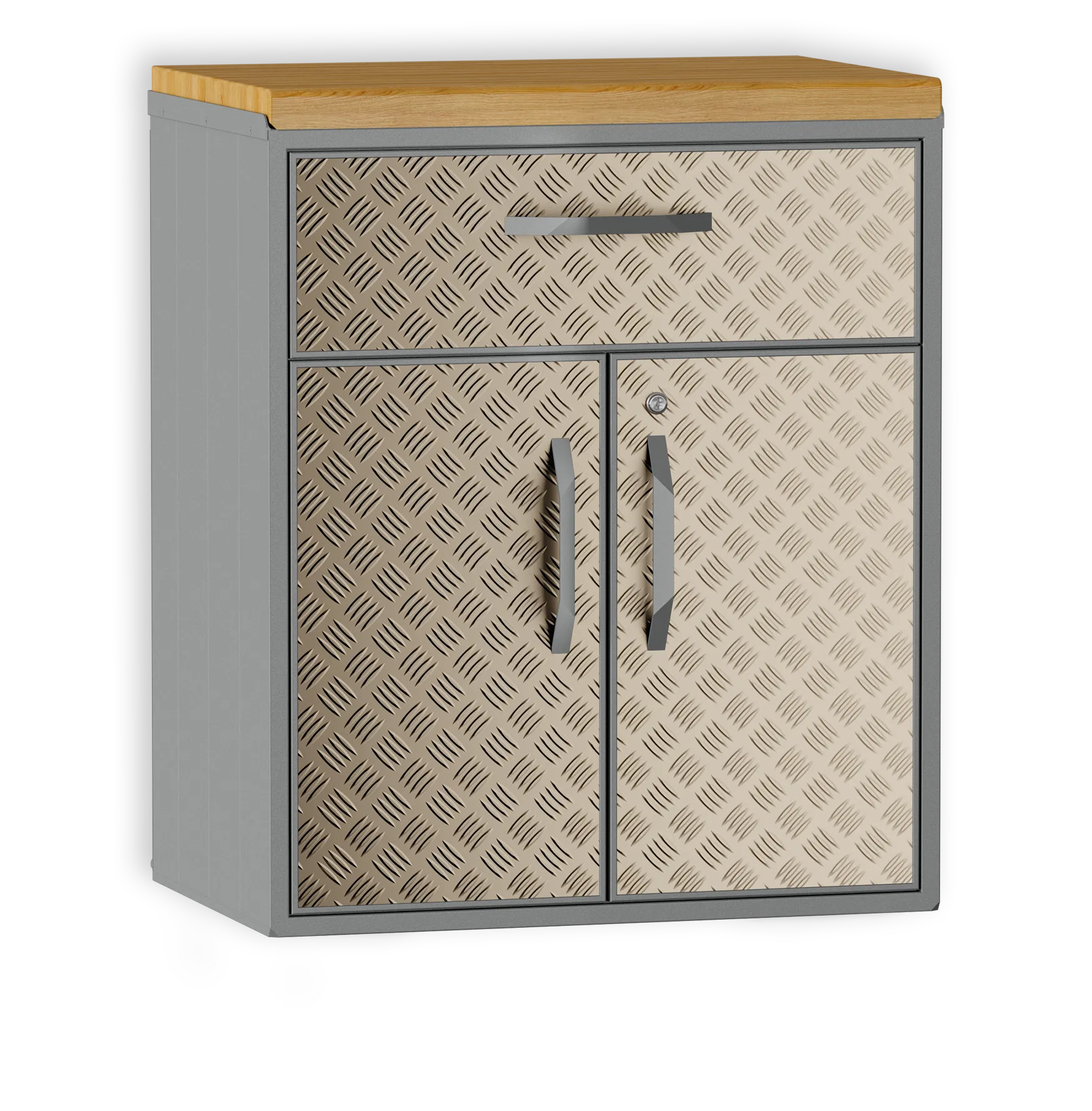 Шкаф из алюминия с ящиком. Специально разработан для любых погодных условий. Внутренняя полка регулируется по высоте. Ящик с доводчиками для плавного бесшумного закрытия.