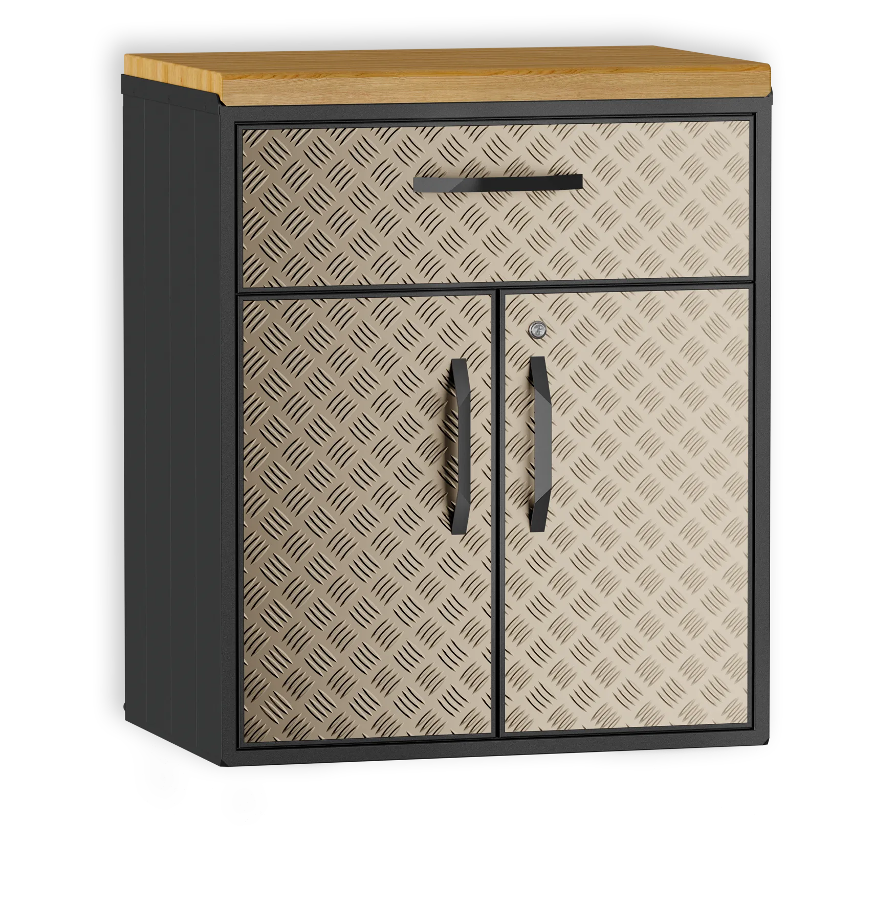 Шкаф из алюминия с ящиком. Специально разработан для любых погодных условий. Внутренняя полка регулируется по высоте. Ящик с доводчиками для плавного бесшумного закрытия.