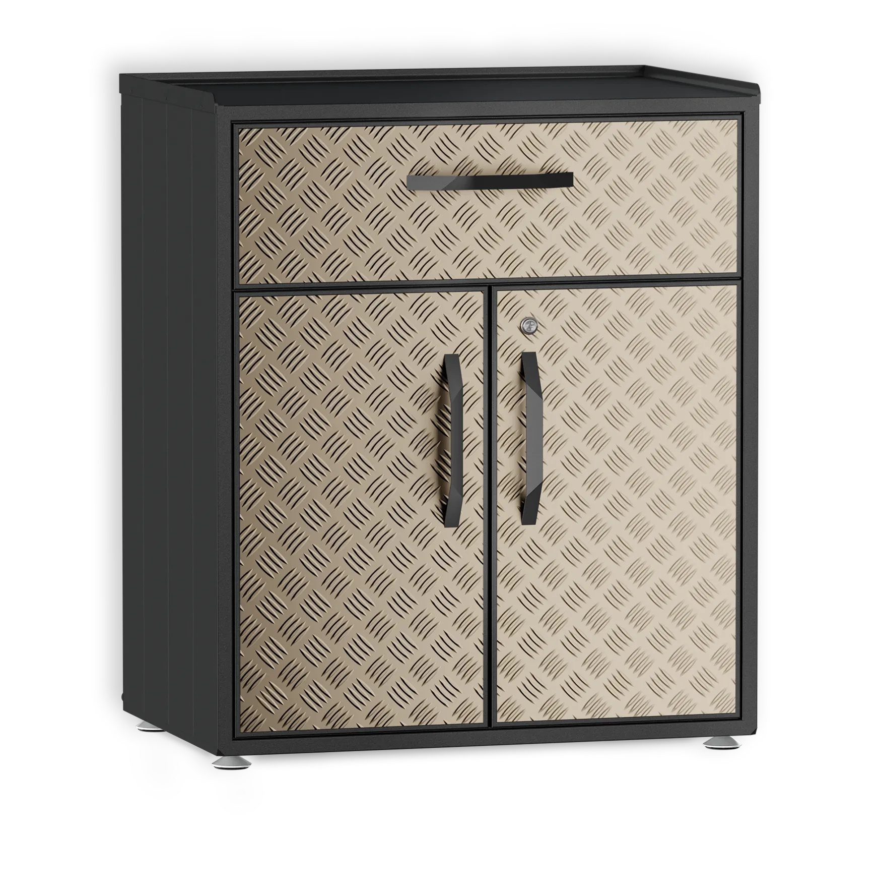 Шкаф из алюминия с ящиком. Специально разработан для любых погодных условий. Внутренняя полка регулируется по высоте. Ящик с доводчиками для плавного бесшумного закрытия.