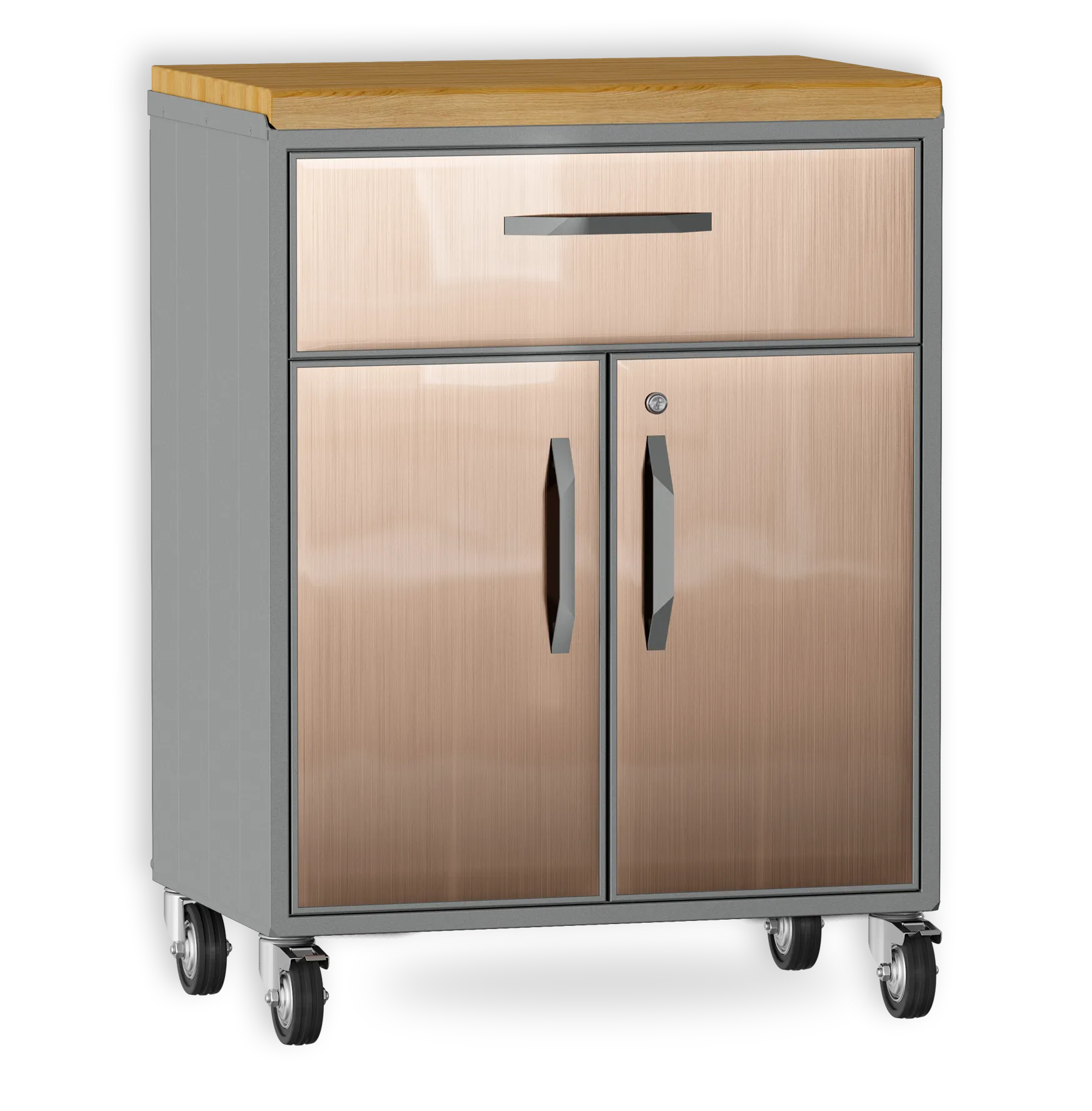 Шкаф из алюминия с ящиком. Специально разработан для любых погодных условий. Внутренняя полка регулируется по высоте. Ящик с доводчиками для плавного бесшумного закрытия.