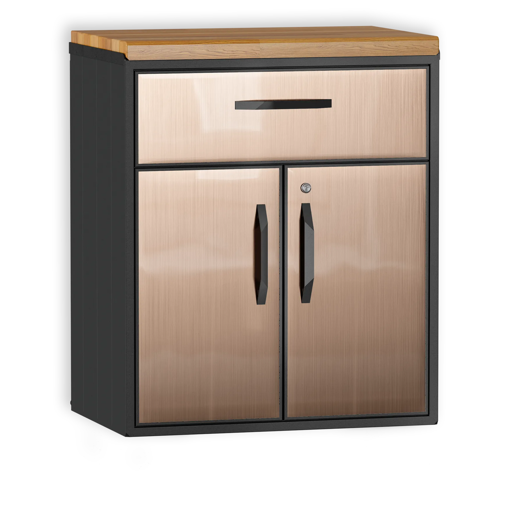 Шкаф из алюминия с ящиком. Специально разработан для любых погодных условий. Внутренняя полка регулируется по высоте. Ящик с доводчиками для плавного бесшумного закрытия.
