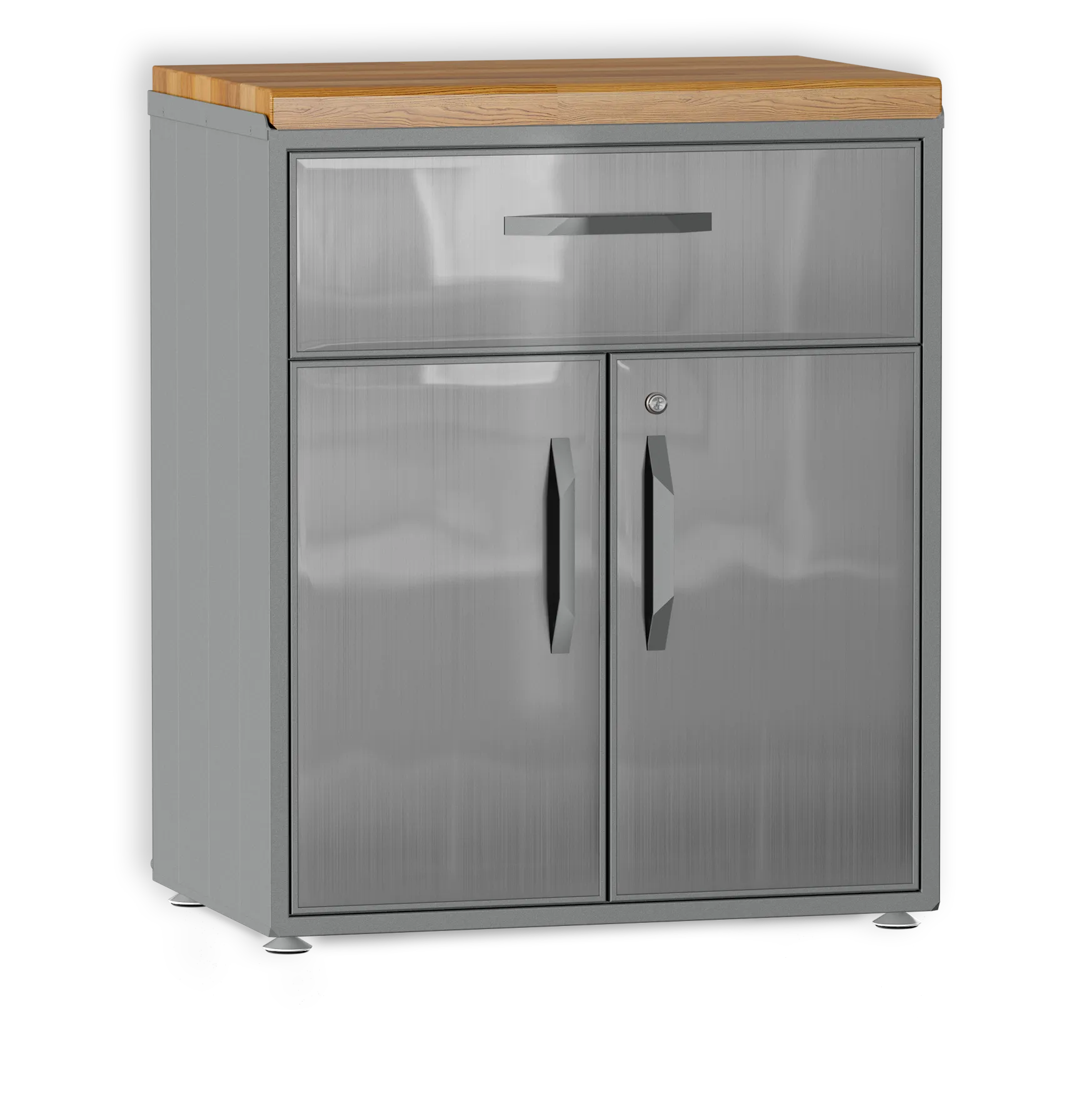 Шкаф из алюминия с ящиком. Специально разработан для любых погодных условий. Внутренняя полка регулируется по высоте. Ящик с доводчиками для плавного бесшумного закрытия.