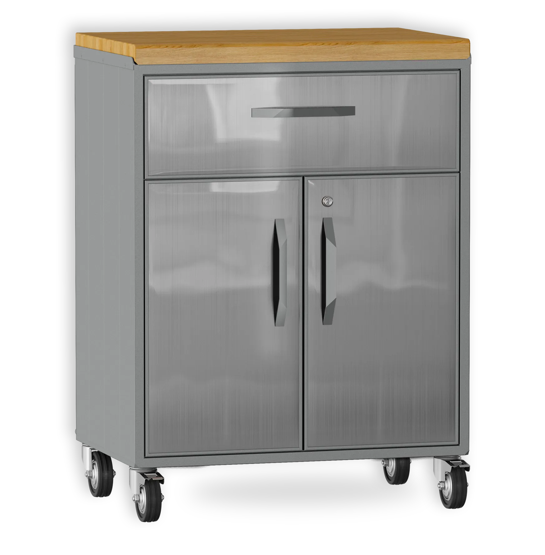 Шкаф из алюминия с ящиком. Специально разработан для любых погодных условий. Внутренняя полка регулируется по высоте. Ящик с доводчиками для плавного бесшумного закрытия.