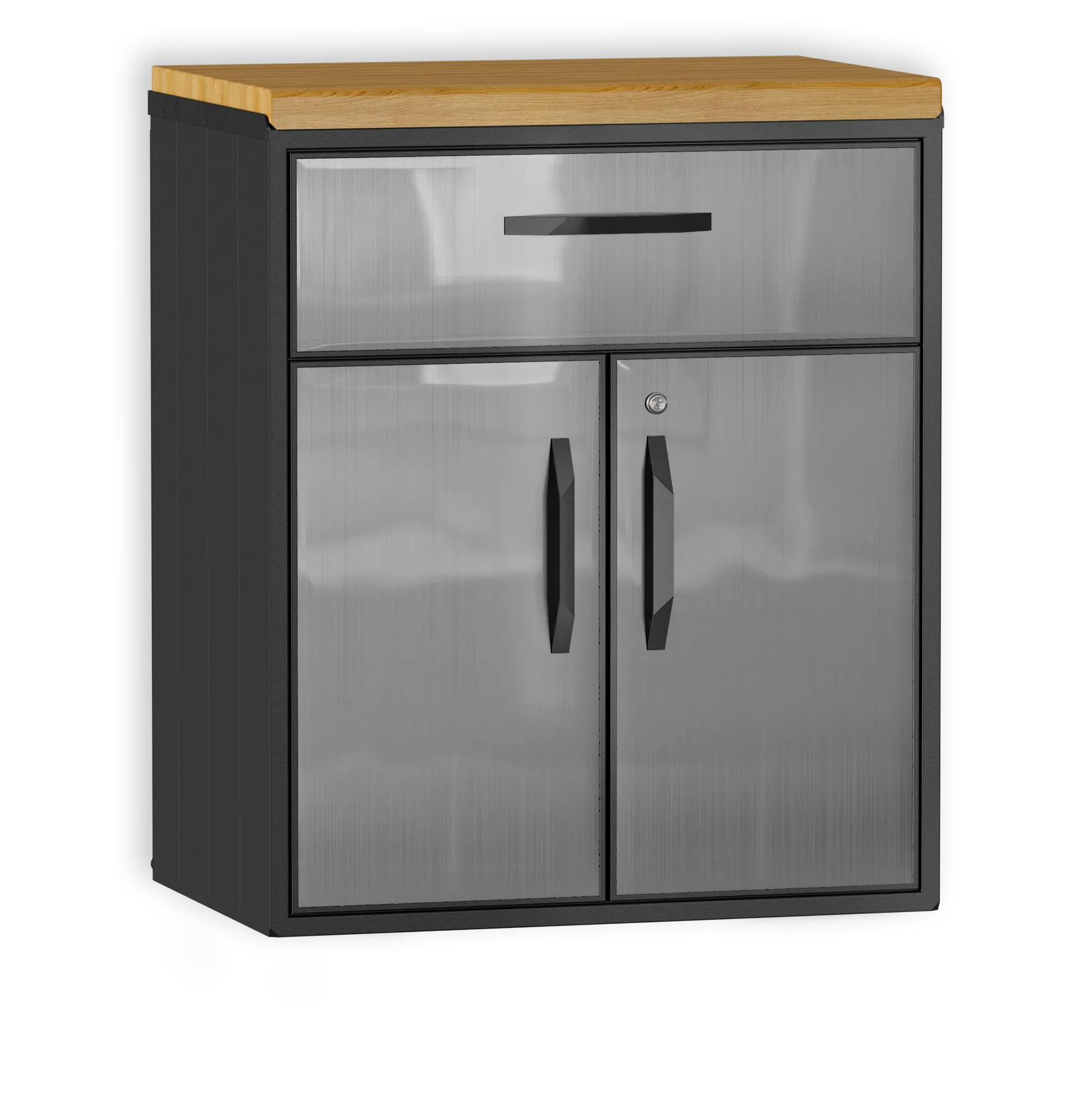 Шкаф из алюминия с ящиком. Специально разработан для любых погодных условий. Внутренняя полка регулируется по высоте. Ящик с доводчиками для плавного бесшумного закрытия.