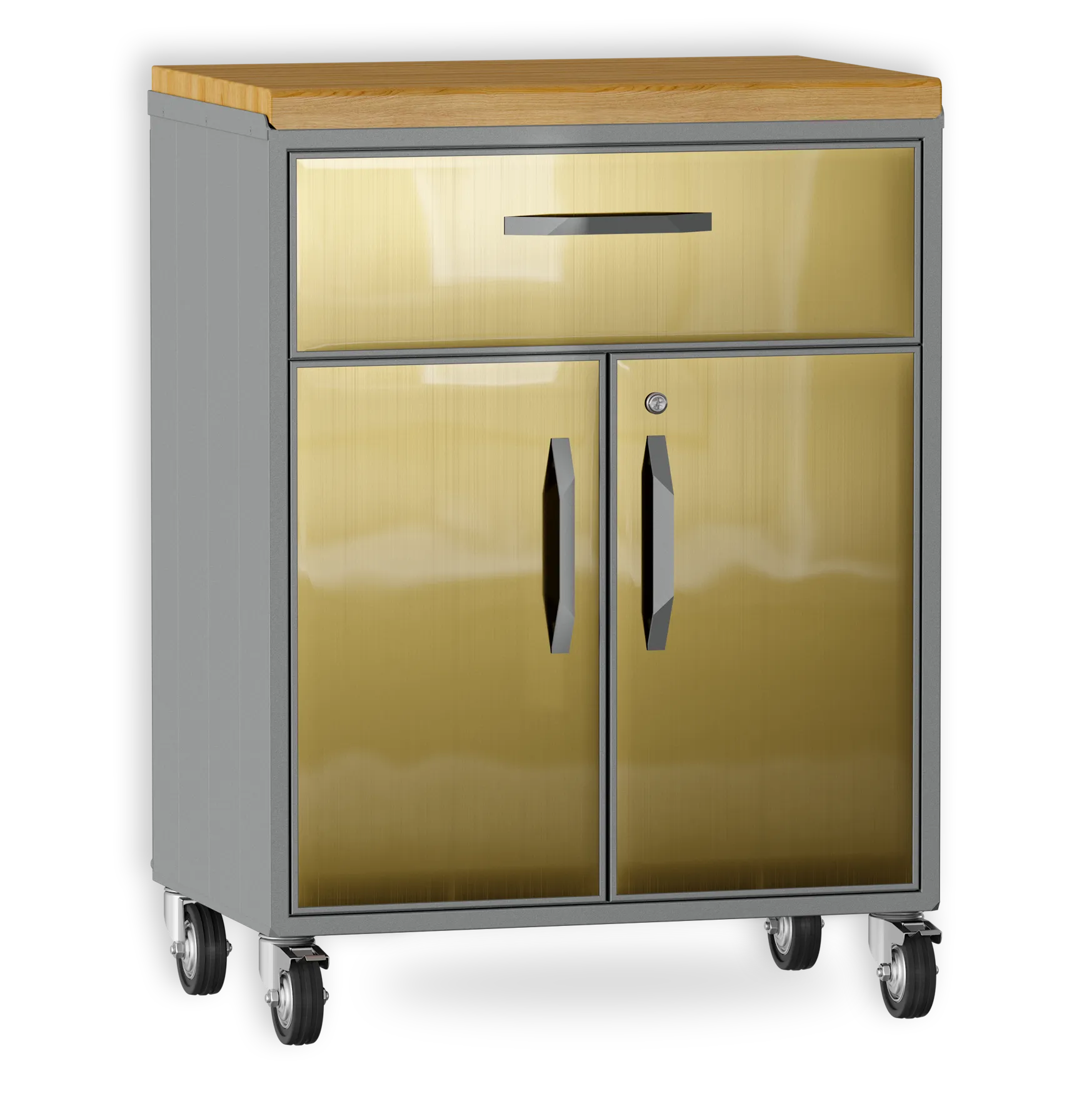 Шкаф из алюминия с ящиком. Специально разработан для любых погодных условий. Внутренняя полка регулируется по высоте. Ящик с доводчиками для плавного бесшумного закрытия.