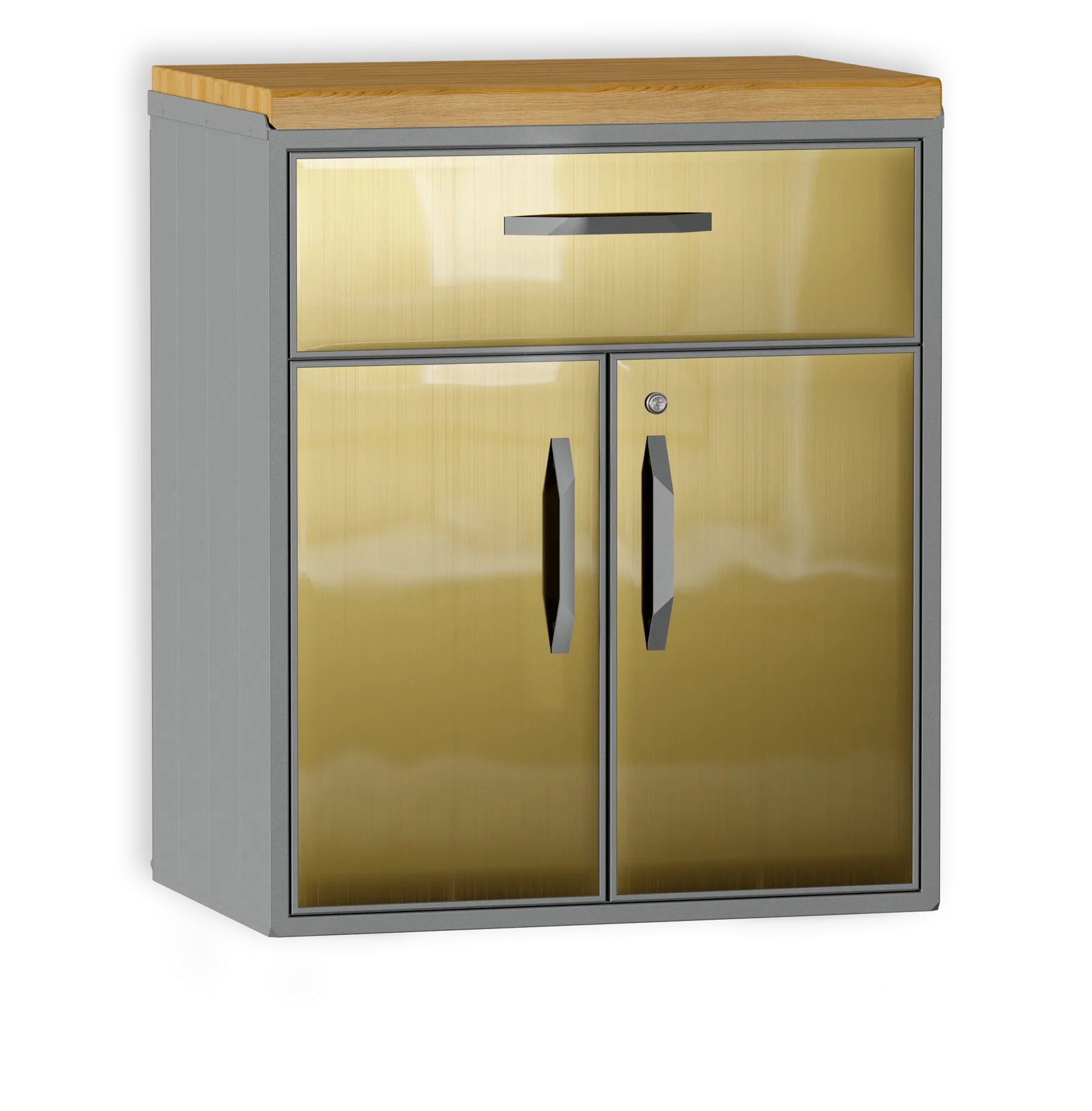 Шкаф из алюминия с ящиком. Специально разработан для любых погодных условий. Внутренняя полка регулируется по высоте. Ящик с доводчиками для плавного бесшумного закрытия.