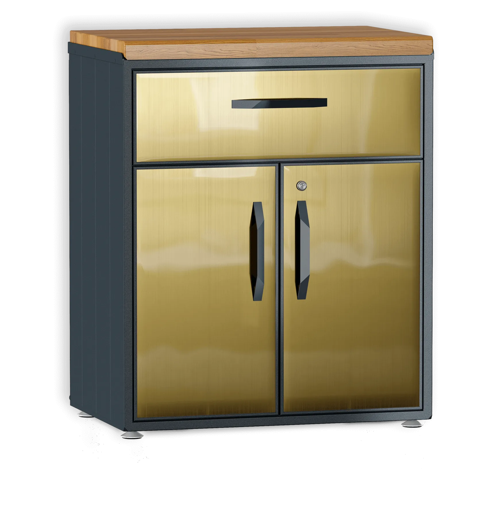 Шкаф из алюминия с ящиком. Специально разработан для любых погодных условий. Внутренняя полка регулируется по высоте. Ящик с доводчиками для плавного бесшумного закрытия.