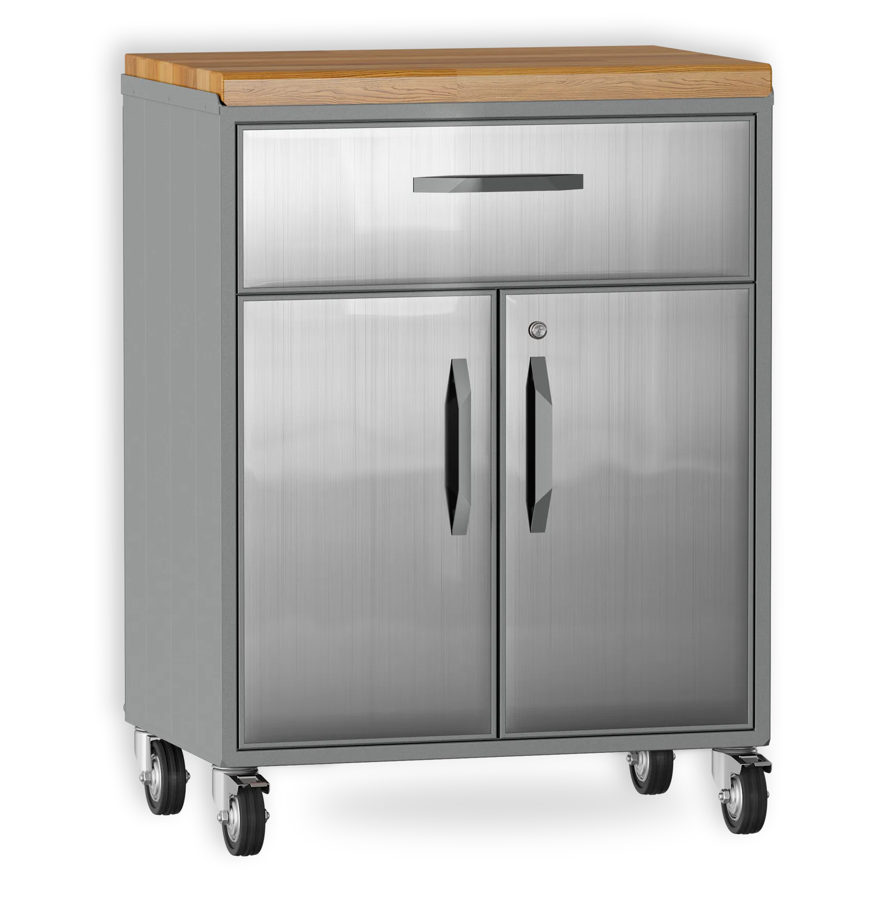 Шкаф из алюминия с ящиком. Специально разработан для любых погодных условий. Внутренняя полка регулируется по высоте. Ящик с доводчиками для плавного бесшумного закрытия.