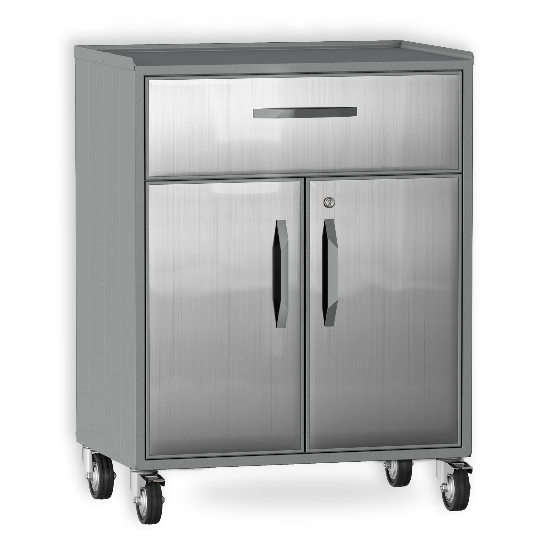 Шкаф из алюминия с ящиком. Специально разработан для любых погодных условий. Внутренняя полка регулируется по высоте. Ящик с доводчиками для плавного бесшумного закрытия.