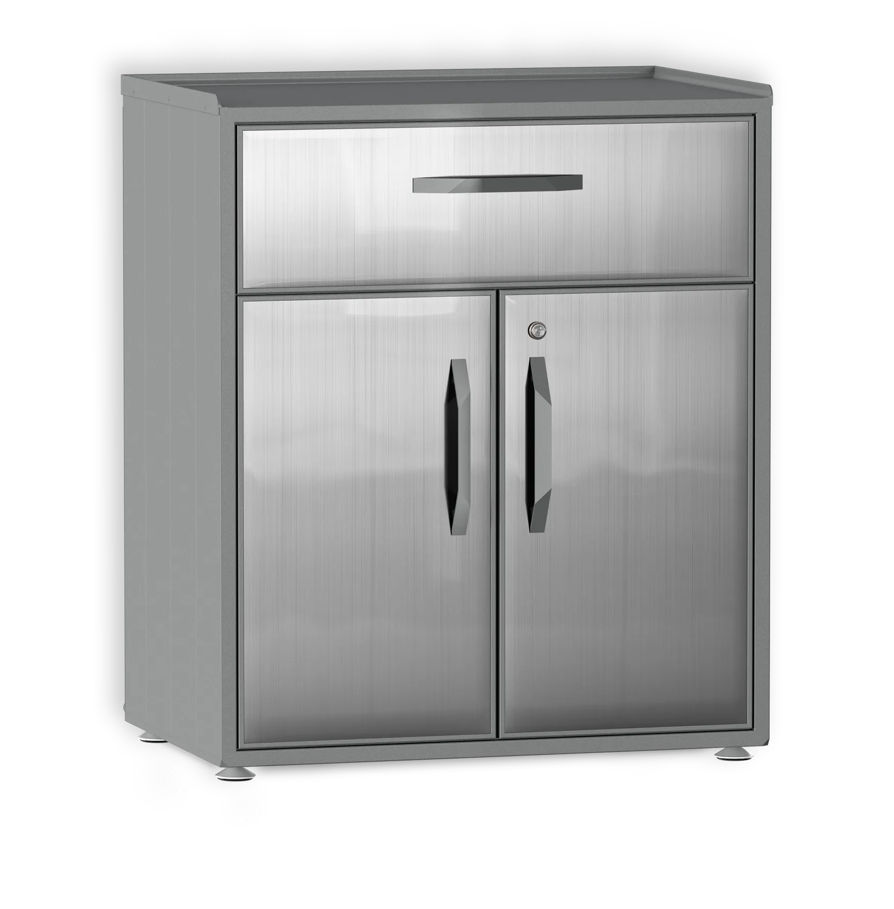 Шкаф из алюминия с ящиком. Специально разработан для любых погодных условий. Внутренняя полка регулируется по высоте. Ящик с доводчиками для плавного бесшумного закрытия.