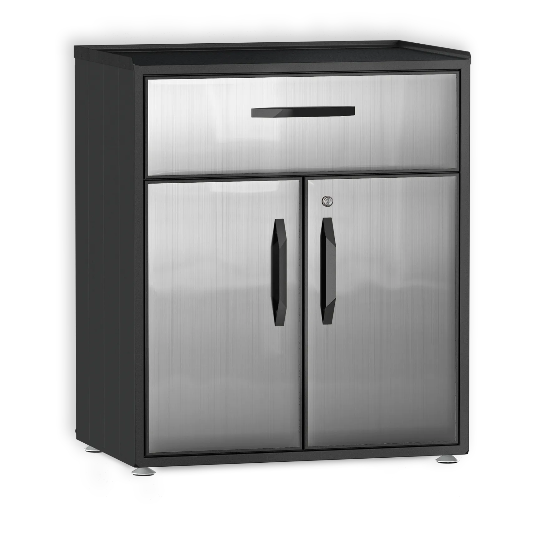 Шкаф из алюминия с ящиком. Специально разработан для любых погодных условий. Внутренняя полка регулируется по высоте. Ящик с доводчиками для плавного бесшумного закрытия.