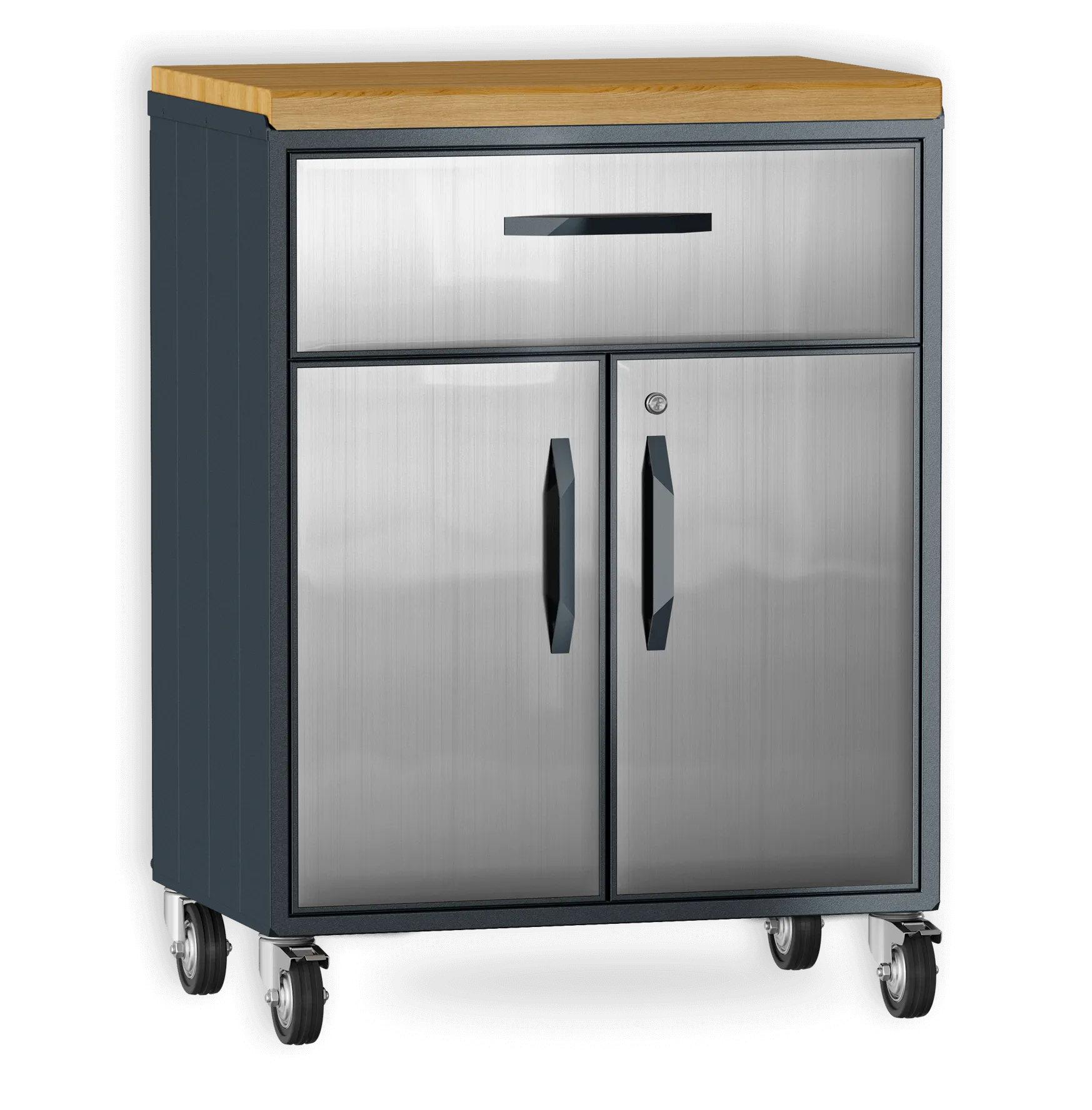 Шкаф из алюминия с ящиком. Специально разработан для любых погодных условий. Внутренняя полка регулируется по высоте. Ящик с доводчиками для плавного бесшумного закрытия.