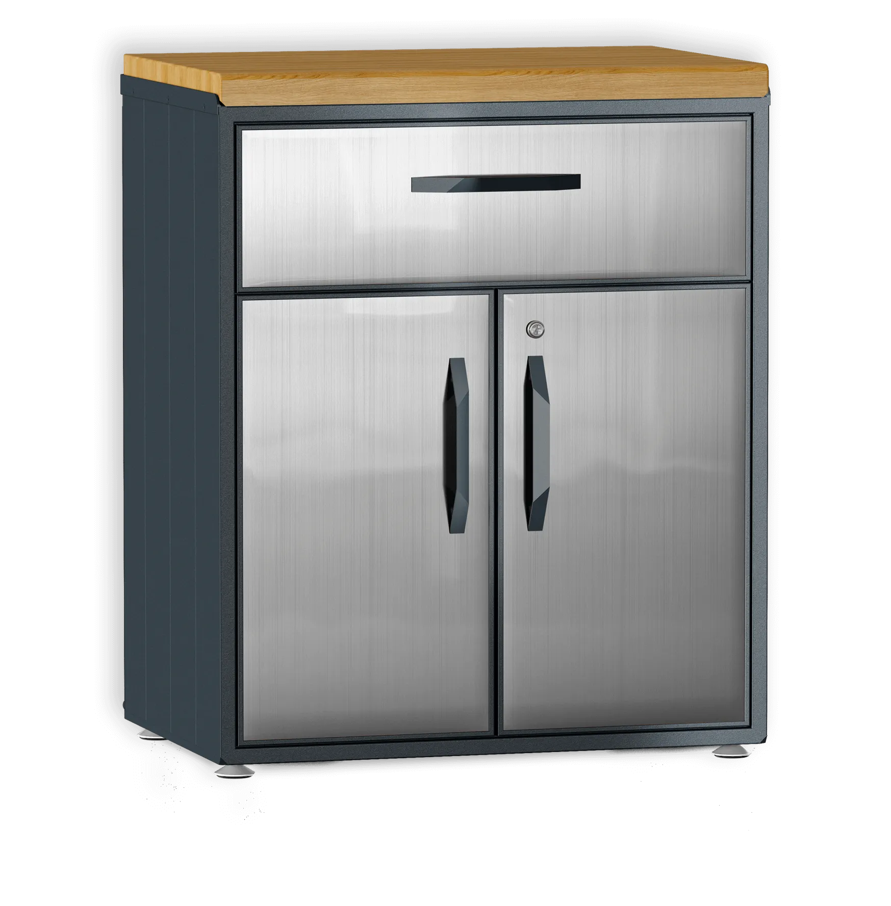 Шкаф из алюминия с ящиком. Специально разработан для любых погодных условий. Внутренняя полка регулируется по высоте. Ящик с доводчиками для плавного бесшумного закрытия.
