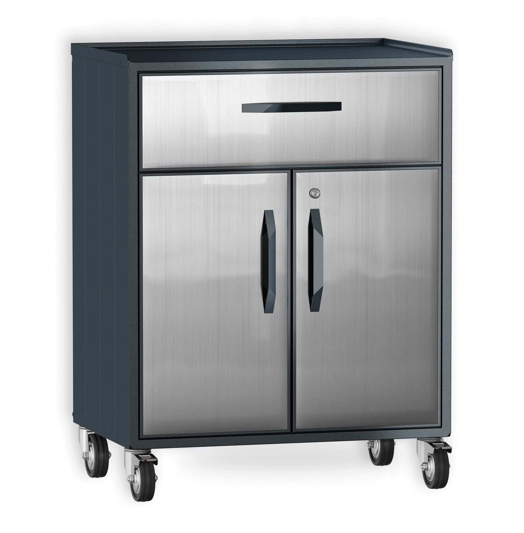 Шкаф из алюминия с ящиком. Специально разработан для любых погодных условий. Внутренняя полка регулируется по высоте. Ящик с доводчиками для плавного бесшумного закрытия.