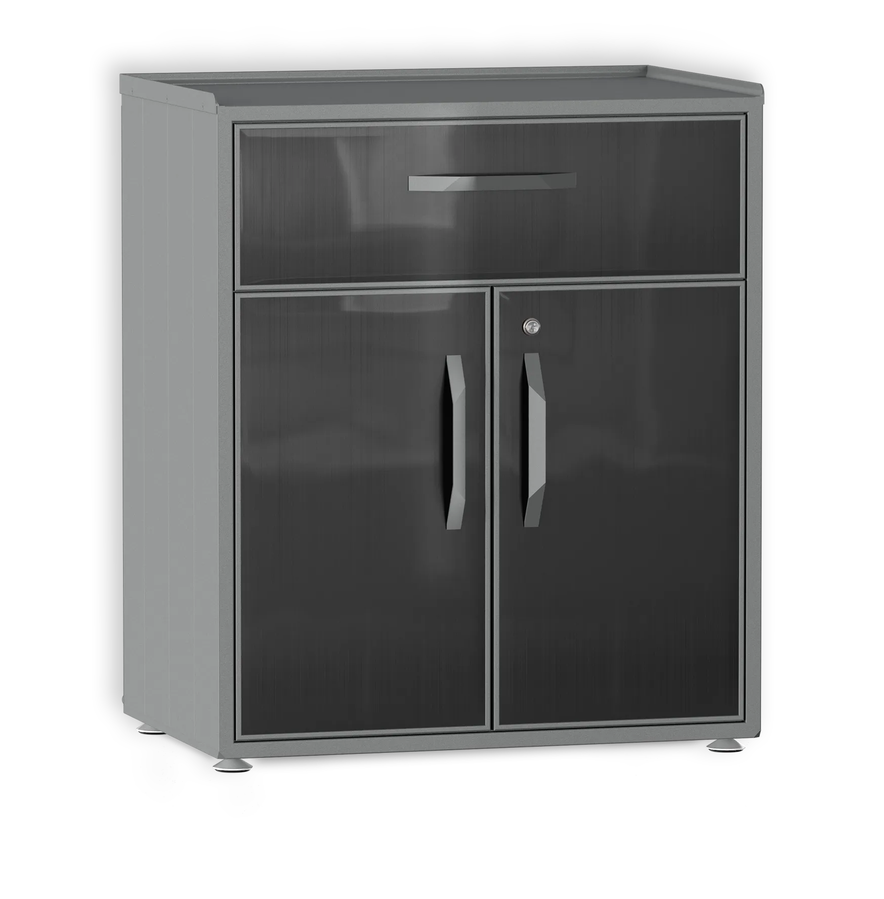 Шкаф из алюминия с ящиком. Специально разработан для любых погодных условий. Внутренняя полка регулируется по высоте. Ящик с доводчиками для плавного бесшумного закрытия.