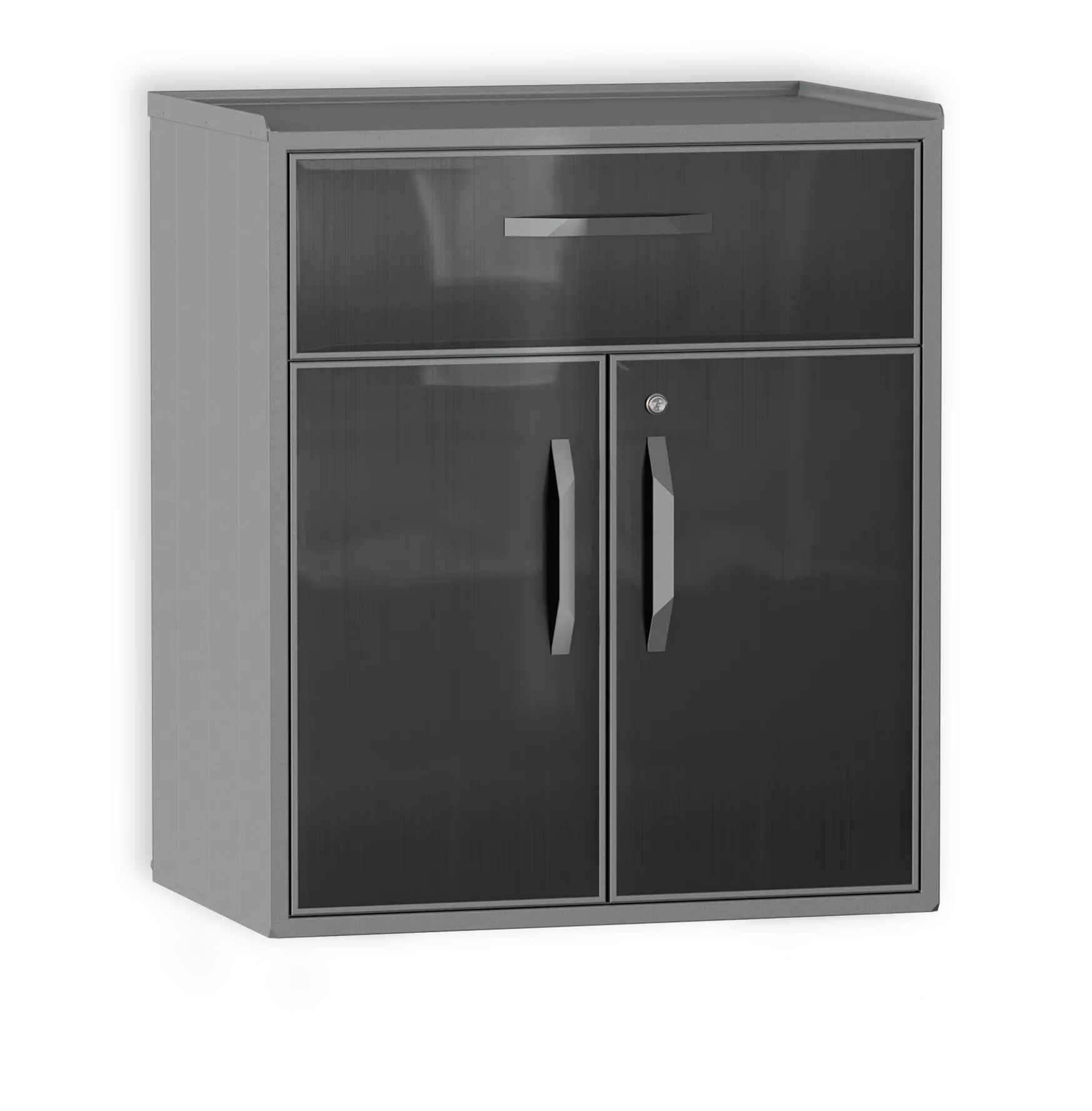 Шкаф из алюминия с ящиком. Специально разработан для любых погодных условий. Внутренняя полка регулируется по высоте. Ящик с доводчиками для плавного бесшумного закрытия.