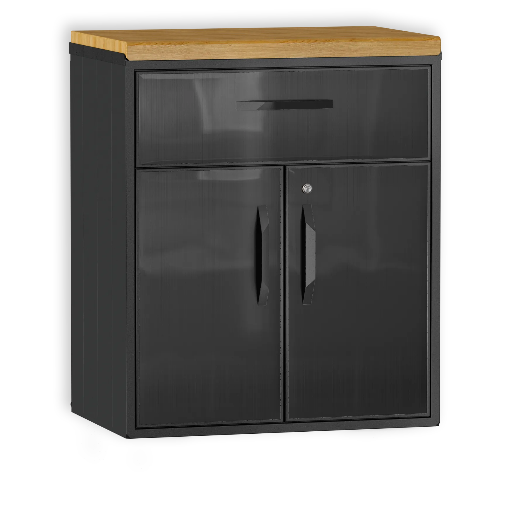 Шкаф из алюминия с ящиком. Специально разработан для любых погодных условий. Внутренняя полка регулируется по высоте. Ящик с доводчиками для плавного бесшумного закрытия.