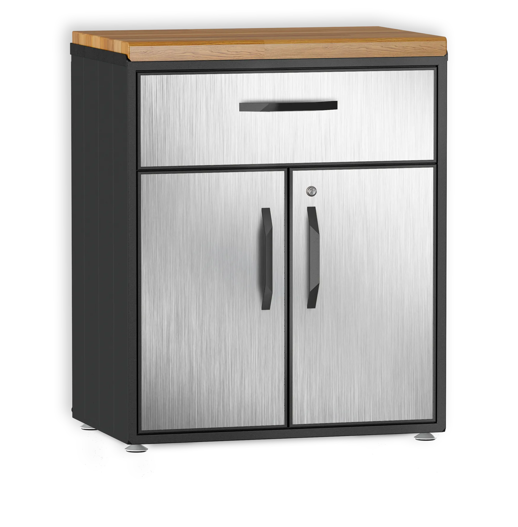 Шкаф из алюминия с ящиком. Специально разработан для любых погодных условий. Внутренняя полка регулируется по высоте. Ящик с доводчиками для плавного бесшумного закрытия.