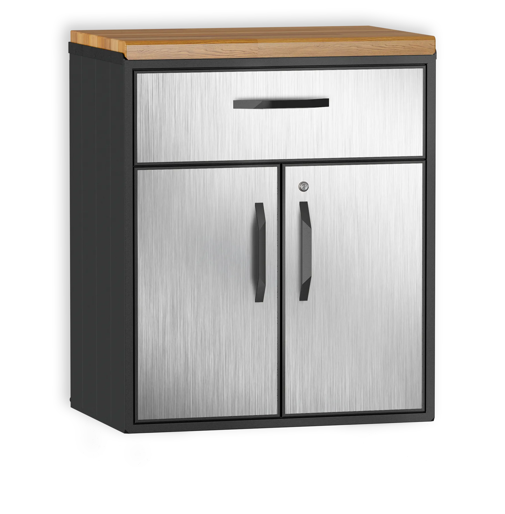 Шкаф из алюминия с ящиком. Специально разработан для любых погодных условий. Внутренняя полка регулируется по высоте. Ящик с доводчиками для плавного бесшумного закрытия.