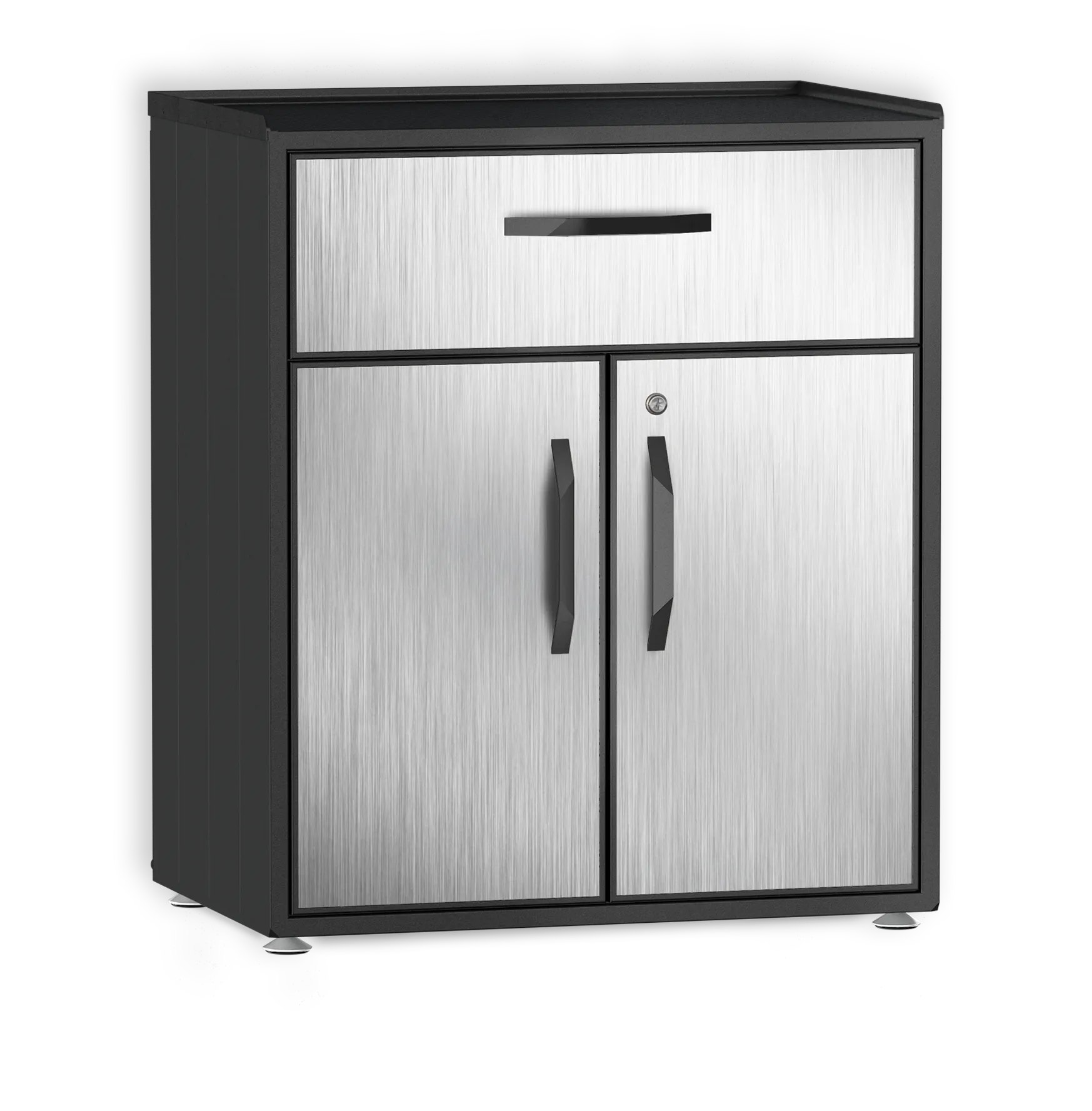 Шкаф из алюминия с ящиком. Специально разработан для любых погодных условий. Внутренняя полка регулируется по высоте. Ящик с доводчиками для плавного бесшумного закрытия.