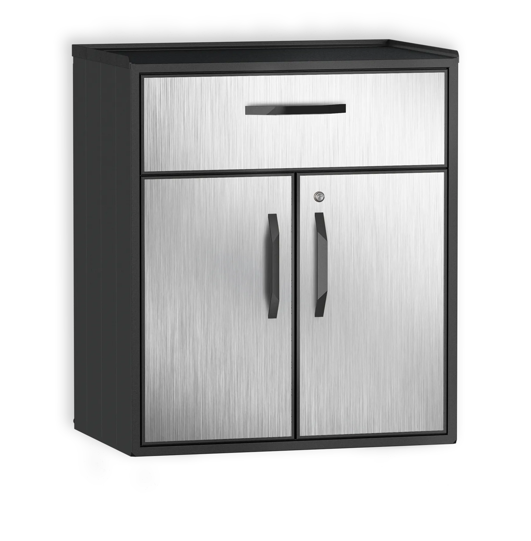 Шкаф из алюминия с ящиком. Специально разработан для любых погодных условий. Внутренняя полка регулируется по высоте. Ящик с доводчиками для плавного бесшумного закрытия.