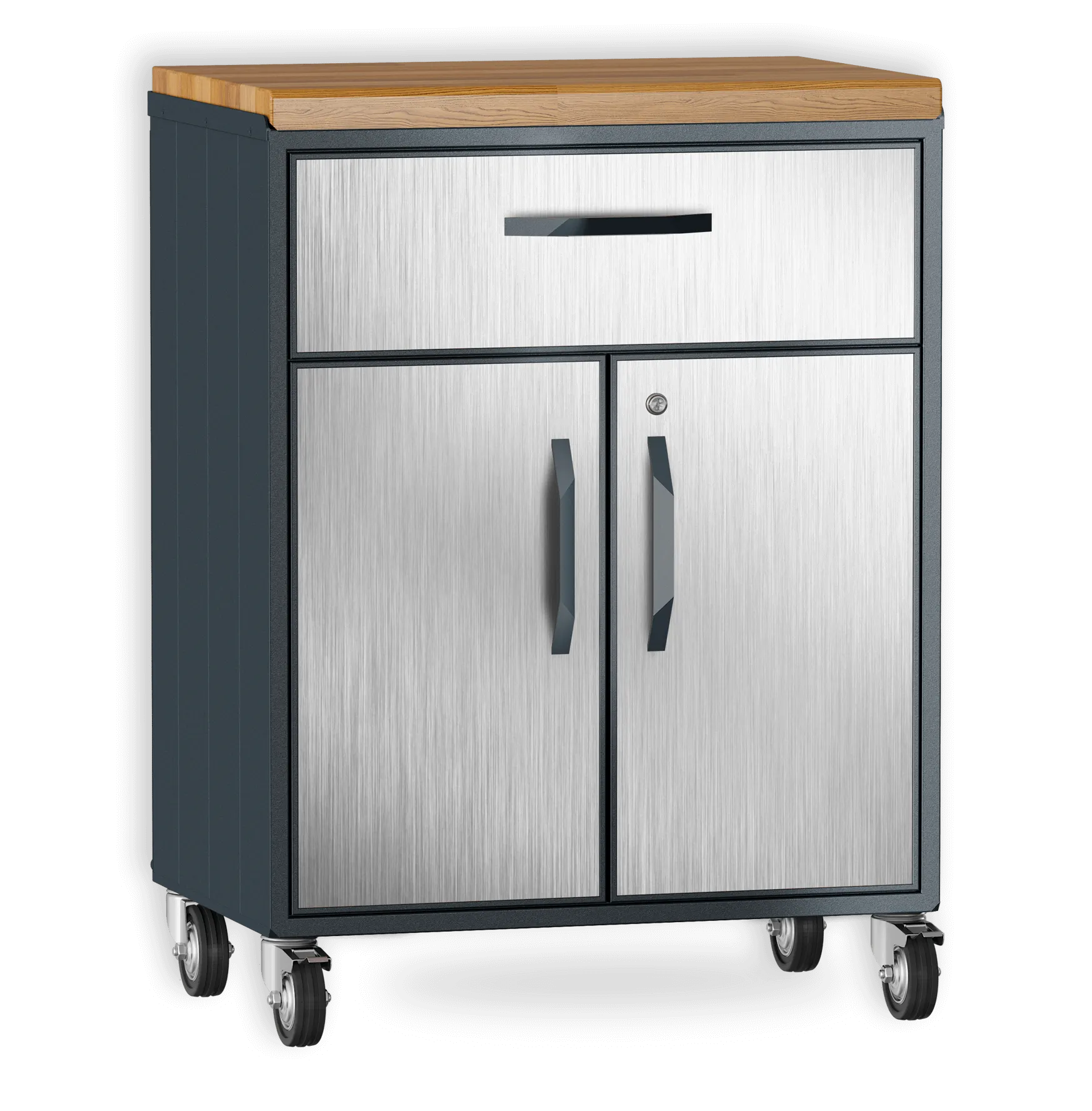 Шкаф из алюминия с ящиком. Специально разработан для любых погодных условий. Внутренняя полка регулируется по высоте. Ящик с доводчиками для плавного бесшумного закрытия.