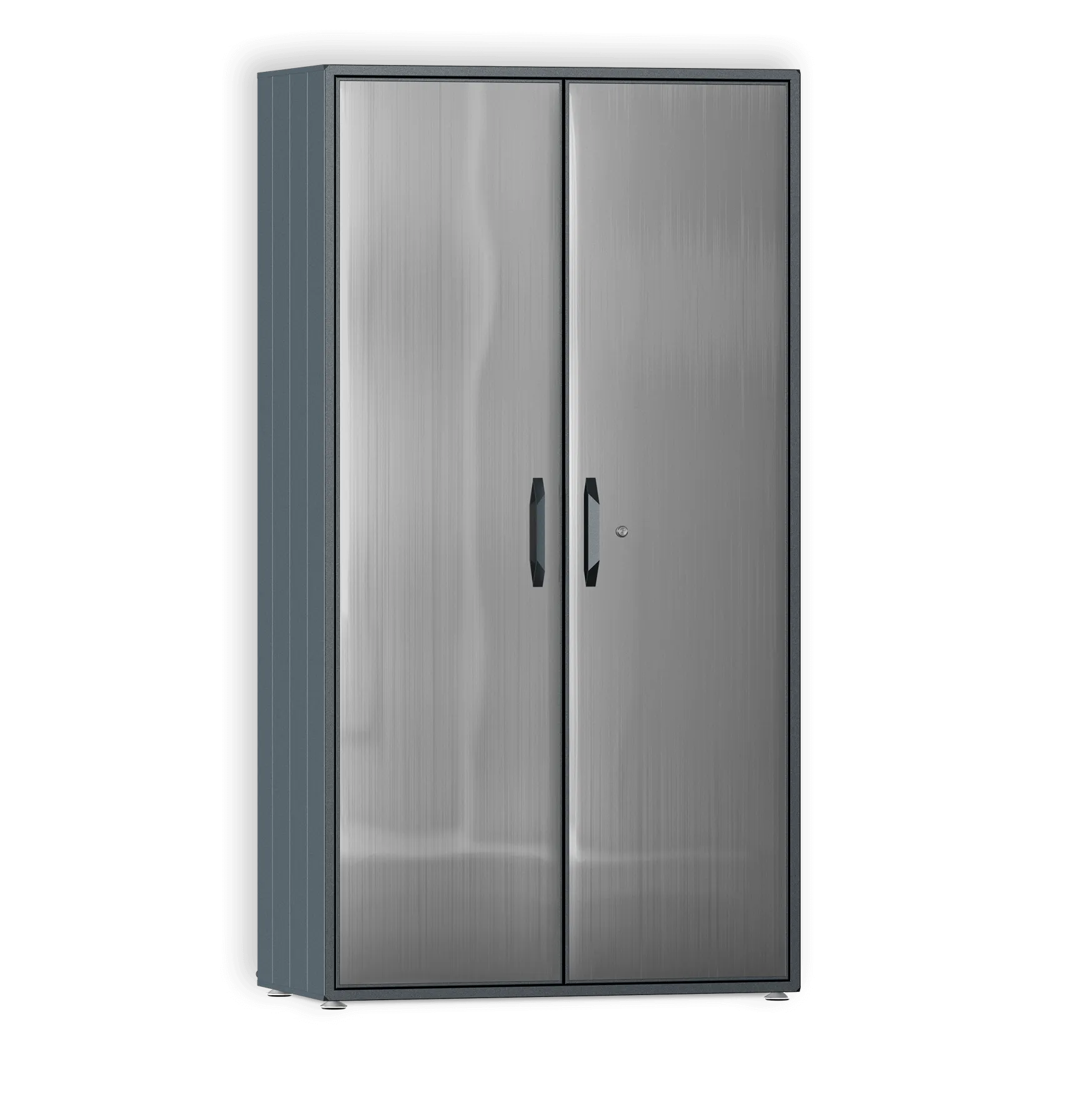 Вместительный шкаф из алюминия для хранения крупногабаритных предметов. Специально разработан для любых погодных условий. Внутренняя полка регулируется по высоте.