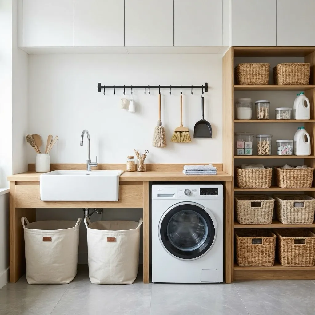 Что должно быть в домашней прачечной: обязательная техника, мебель и системы хранения